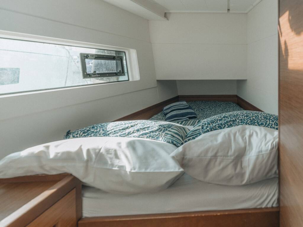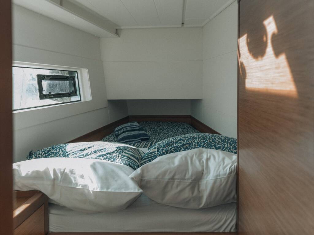 Catamaran Lagoon 40 L'Avventura, built in 2020 is anchored in the Athens, Alimos marina, Athens area/Saronic/Peloponese, Greece. It has 4 + 2 cabins, can accommodate 8 + 2 + 2 people and has 4 + 1 toilets. Bed linen and kitchen equipment are included in the price.