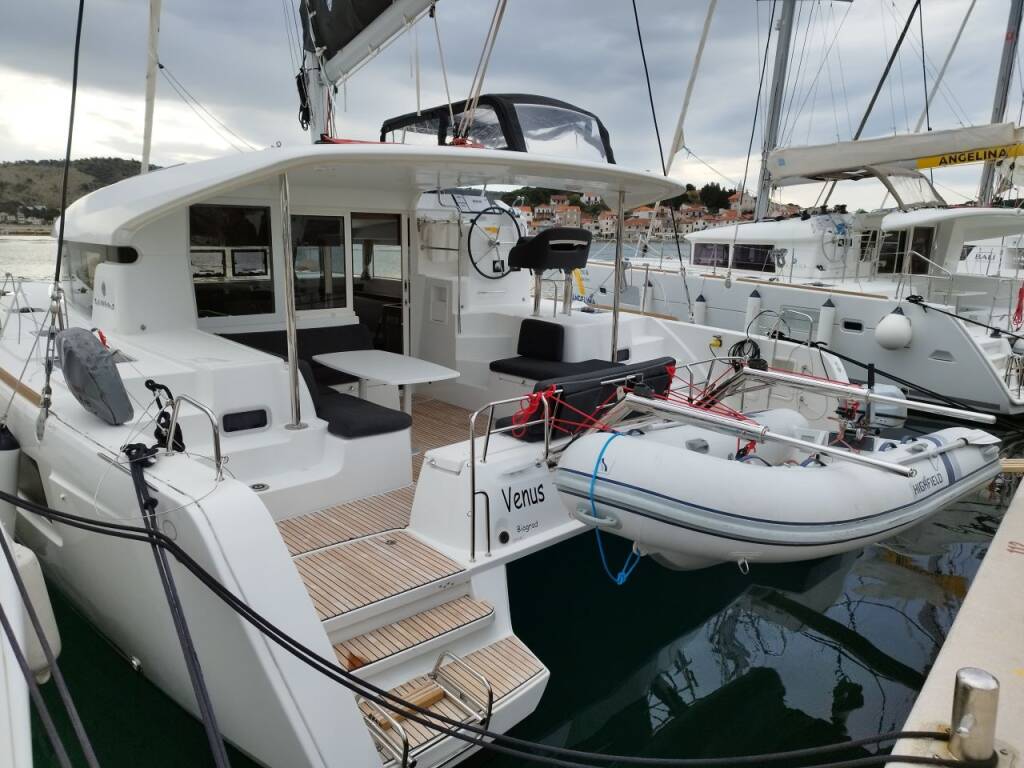 Catamaran Lagoon 40 Venus, built in 2020 is anchored in the Marina Šangulin, Biograd, Zadar region, Croatia. It has 4 + 2 cabins, can accommodate 8 + 2 + 2 people and has 4 toilets. Bed linen and kitchen equipment are included in the price.