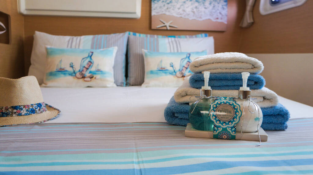Catamaran Lagoon 400 Excellent, built in 2012 is anchored in the Ormos Panagias, Northern Greece/Aegean, Greece. It has 4 + 2 cabins, can accommodate 8 + 2 + 2 people and has 4 toilets. Bed linen and kitchen equipment are included in the price.