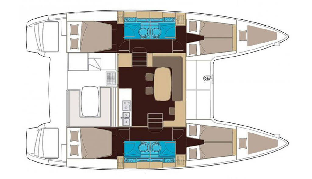 Catamaran Lagoon 400 Jazz Point, built in 2012 is anchored in the ACI Marina Split, Split region, Croatia. It has 4 + 2 cabins, can accommodate 8 + 2 people and has 4 toilets. Bed linen and kitchen equipment are included in the price.