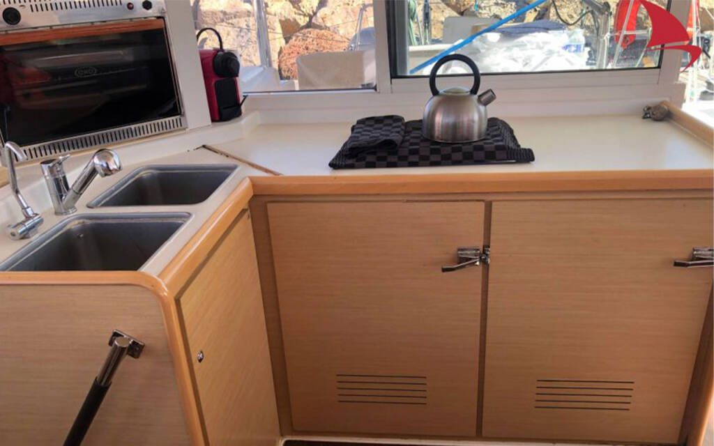 Catamaran Lagoon 400 Maya, built in 2012 is anchored in the Port de Bandol, Provence-Alpes-Côte d'Azur, France. It has 4 + 2 cabins, can accommodate 8 + 2 + 2 people and has 2 toilets. Bed linen and kitchen equipment are included in the price.