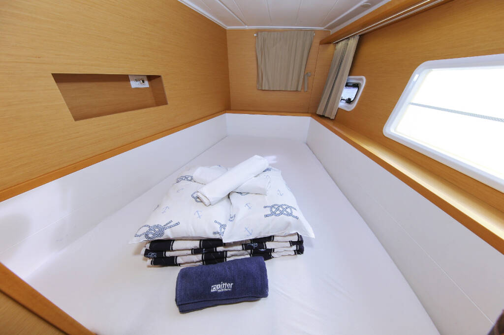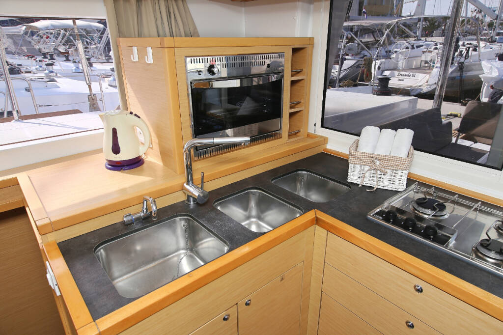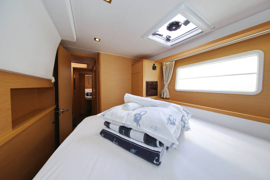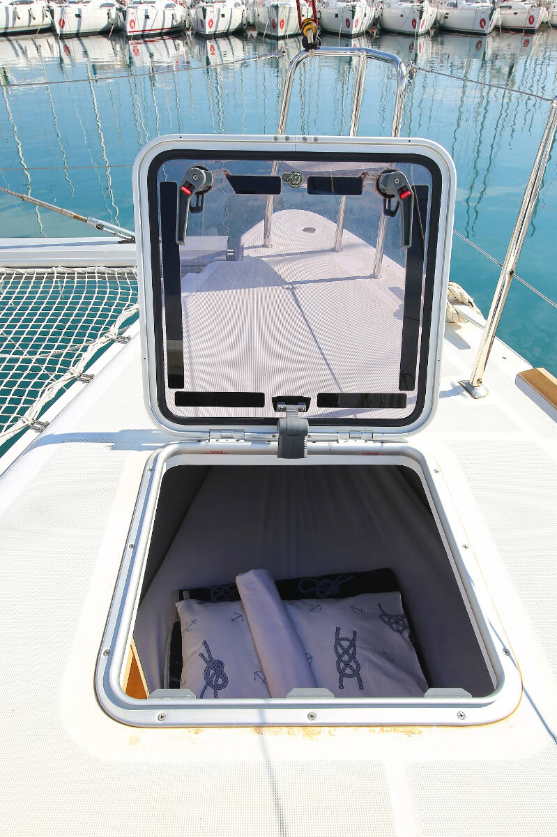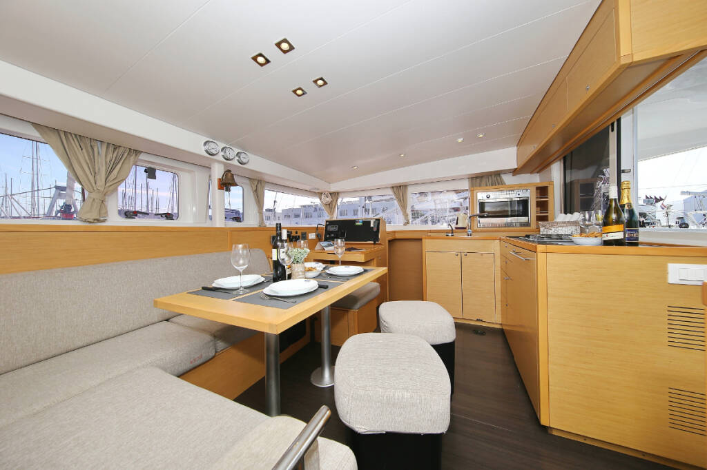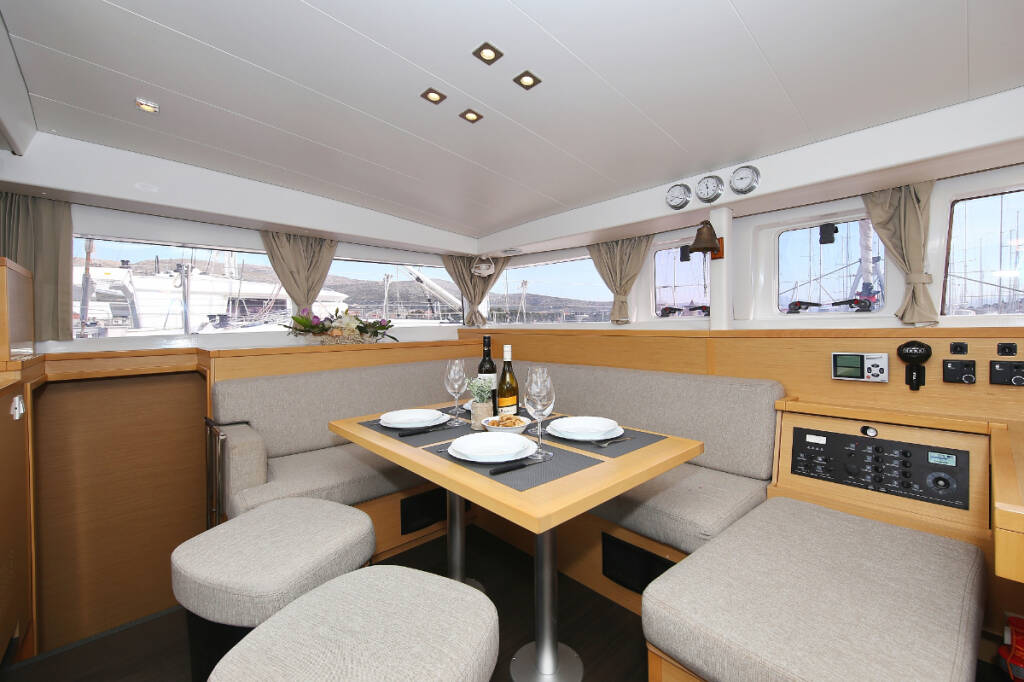 Catamaran Lagoon 400 S2 Elea, built in 2014 is anchored in the ACI Marina Trogir, Split region, Croatia. It has 4 + 2 cabins, can accommodate 8 + 2 + 2 people and has 2 toilets. Bed linen and kitchen equipment are included in the price.