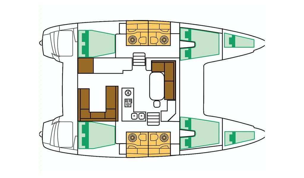Catamaran Lagoon 400 S2 Maja V, built in 2013 is anchored in the Biograd, Marina Molum (Sv. Filip i Jakov), Zadar region, Croatia. It has 4 + 2 cabins, can accommodate 8 + 2 + 2 people and has 4 toilets. Bed linen and kitchen equipment are included in the price.