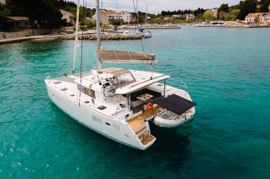 Catamaran Lagoon 400 S2 Miss Moneypenny, built in 2016 is anchored in the Marina Mandalina, Sibenik, Šibenik region, Croatia. It has 4 + 2 cabins, can accommodate 8 + 2 + 2 people and has 4 toilets. Bed linen and kitchen equipment are included in the price.