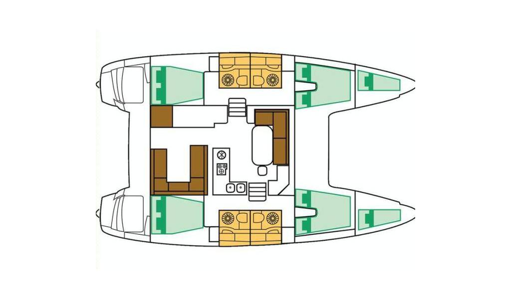 Catamaran Lagoon 400 S2 Tulip, built in 2018 is anchored in the Lavrion, main port, Athens area/Saronic/Peloponese, Greece. It has 6 cabins, can accommodate 12 people and has 5 toilets. Bed linen and kitchen equipment are included in the price.