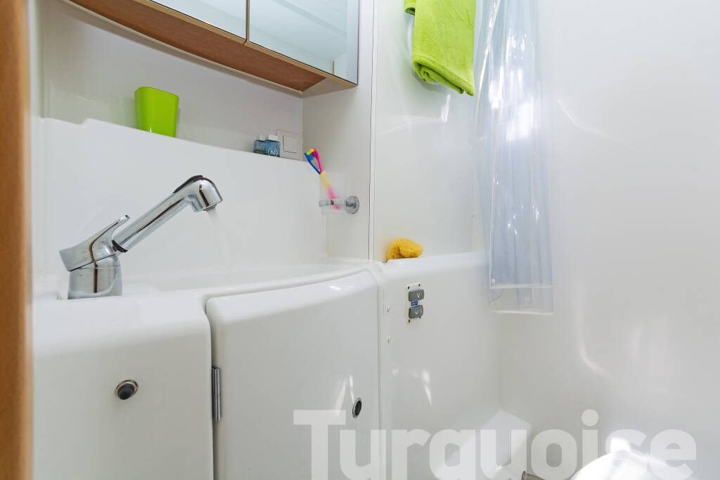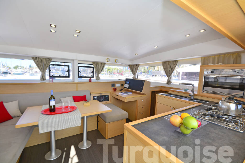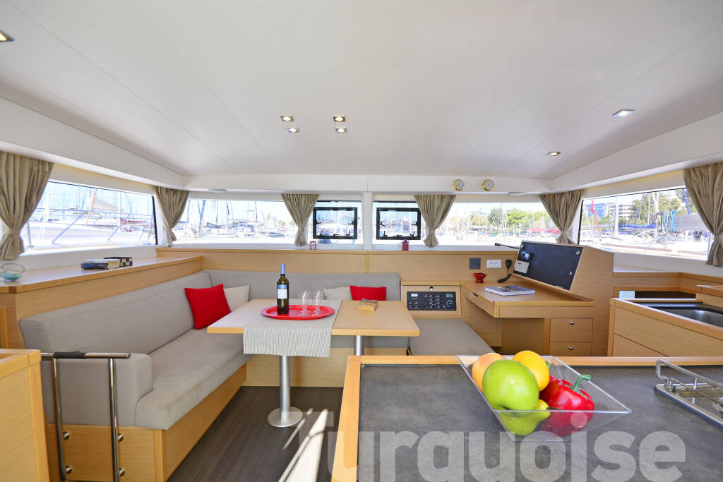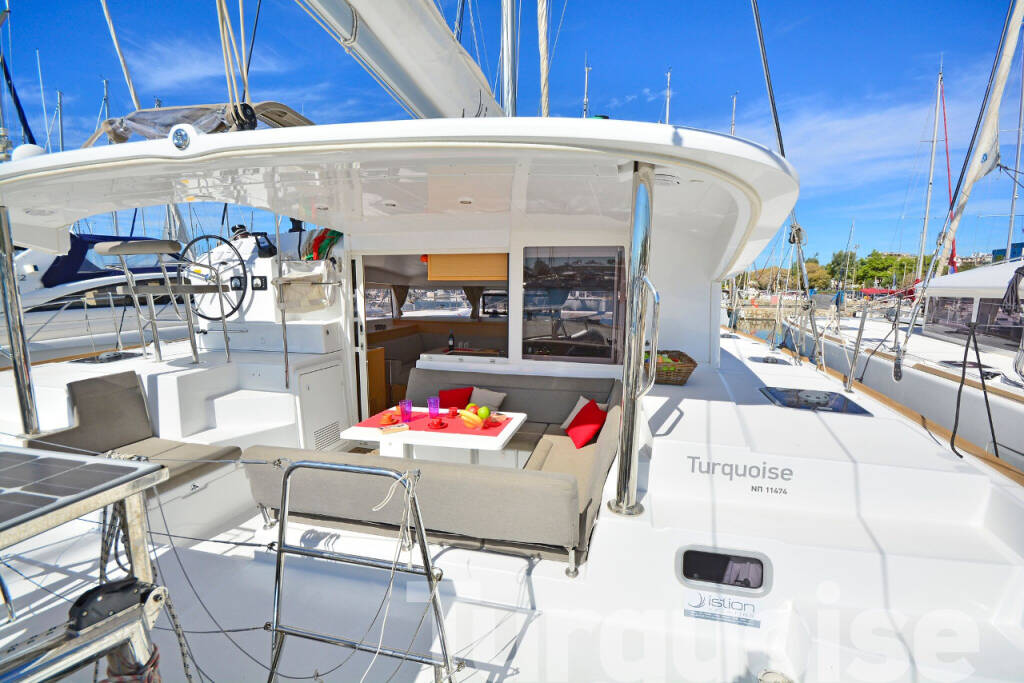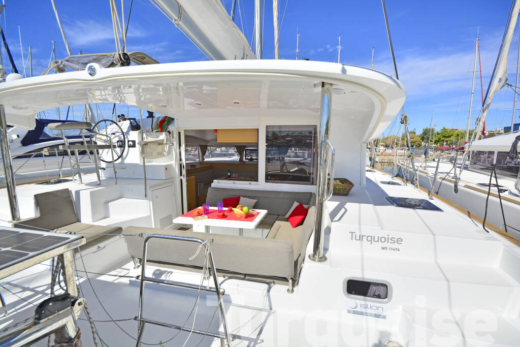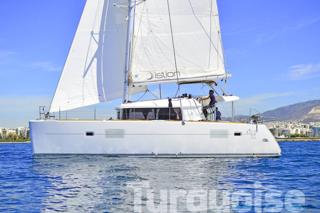 Catamaran Lagoon 400 S2 Turquoise, built in 2016 is anchored in the Lavrion, main port, Athens area/Saronic/Peloponese, Greece. It has 4 + 2 cabins, can accommodate 8 + 2 people and has 4 + 1 toilets. Bed linen and kitchen equipment are included in the price.