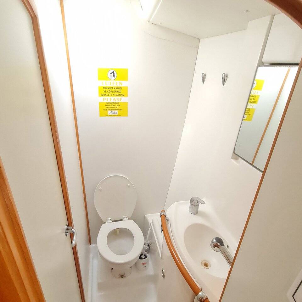 Catamaran Lagoon 410 S2 Aloha, built in 2005 is anchored in the Fethiye, Yacht Club Mai, Aegean, Turkey. It has 4 + 1 cabins, can accommodate 8 people and has 4 toilets. Bed linen and kitchen equipment are included in the price.