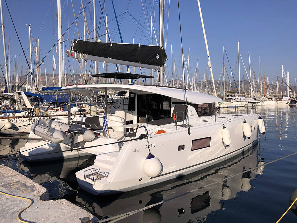 Catamaran Lagoon 42 Aktis, built in 2020 is anchored in the Athens, Alimos marina, Athens area/Saronic/Peloponese, Greece. It has 4 + 2 cabins, can accommodate 8 + 2 + 2 people and has 4 + 1 toilets. Bed linen and kitchen equipment are included in the price.