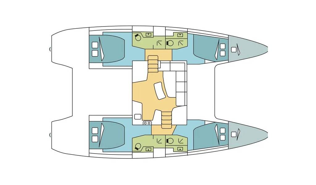Catamaran Lagoon 42 Art of Liberty, built in 2020 is anchored in the Rhodes New Marina, Dodecanese, Greece. It has 4 + 2 cabins, can accommodate 8 + 2 people and has 4 toilets. Bed linen and kitchen equipment are included in the price.
