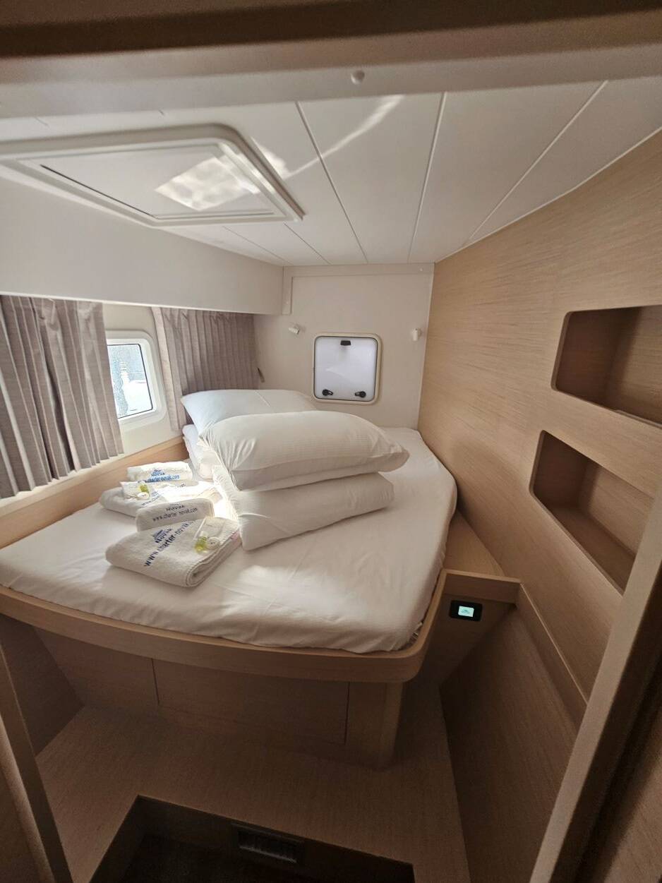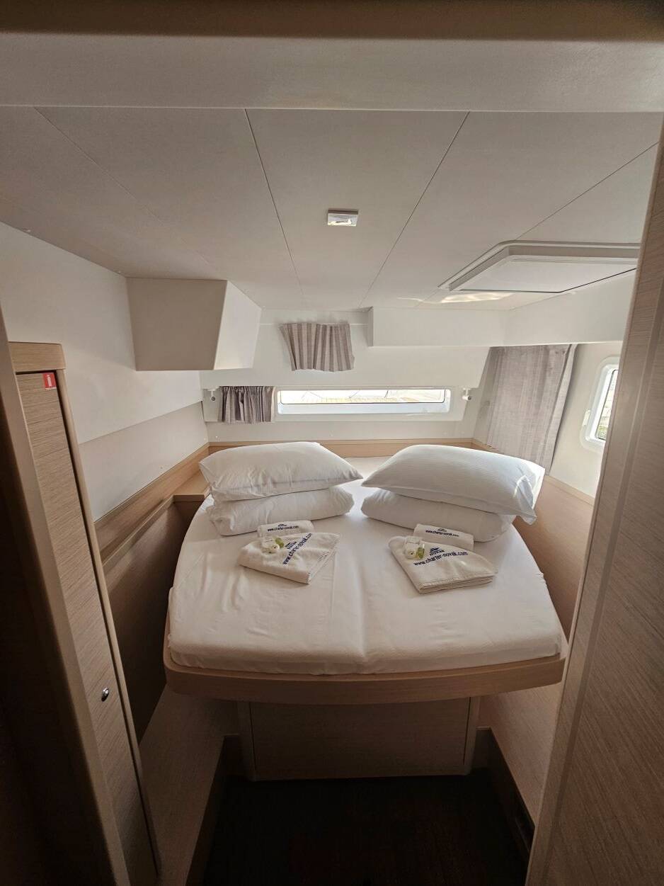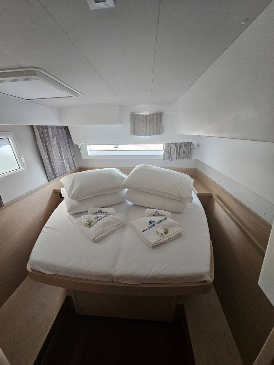 Catamaran Lagoon 42 Azzuro, built in 2023 is anchored in the Marina Kornati, Biograd, Zadar region, Croatia. It has 4 + 2 cabins, can accommodate 8 + 2 + 2 people and has 4 toilets. Bed linen and kitchen equipment are included in the price.