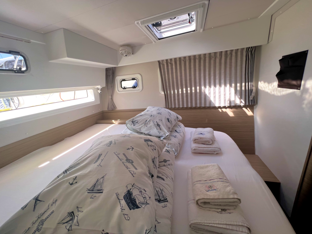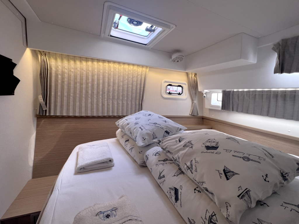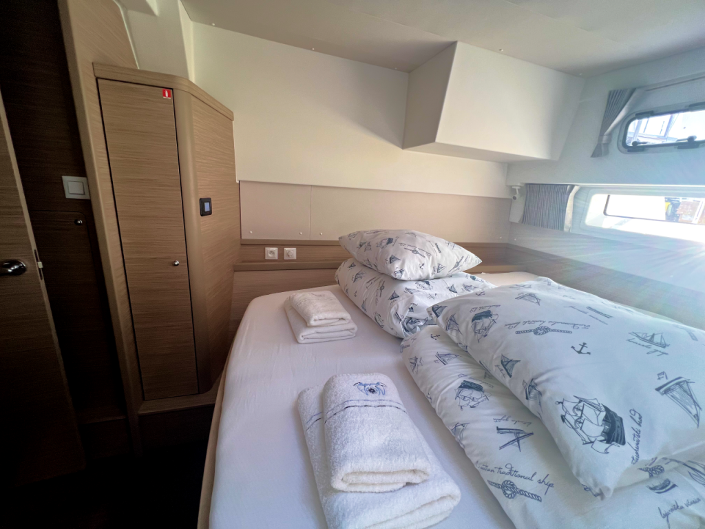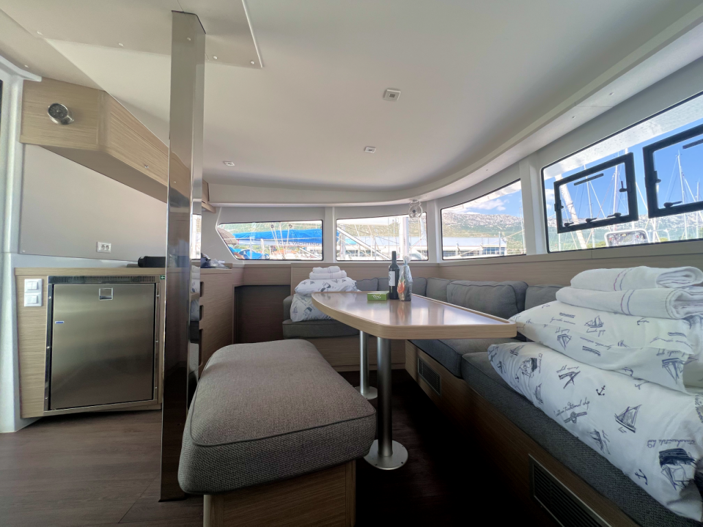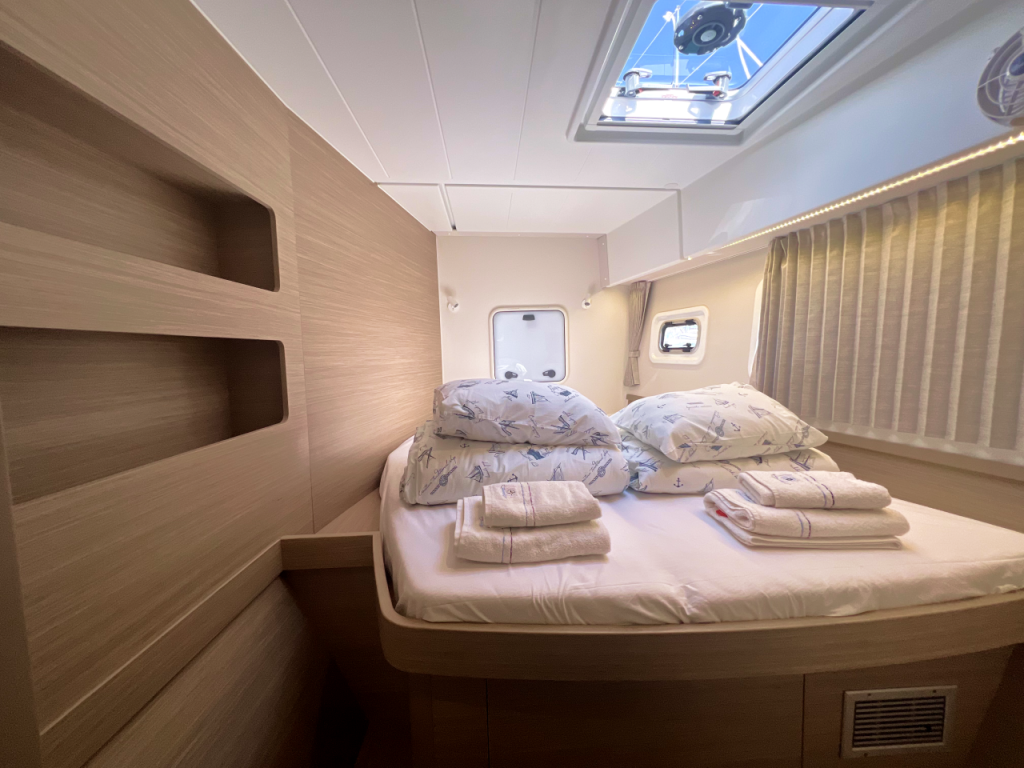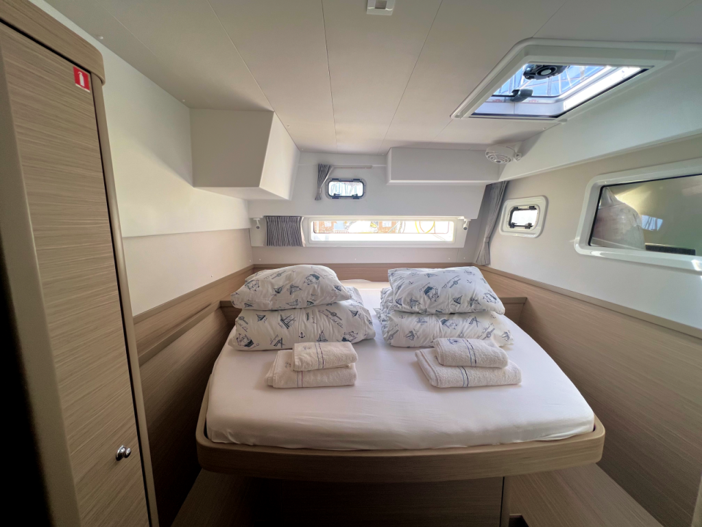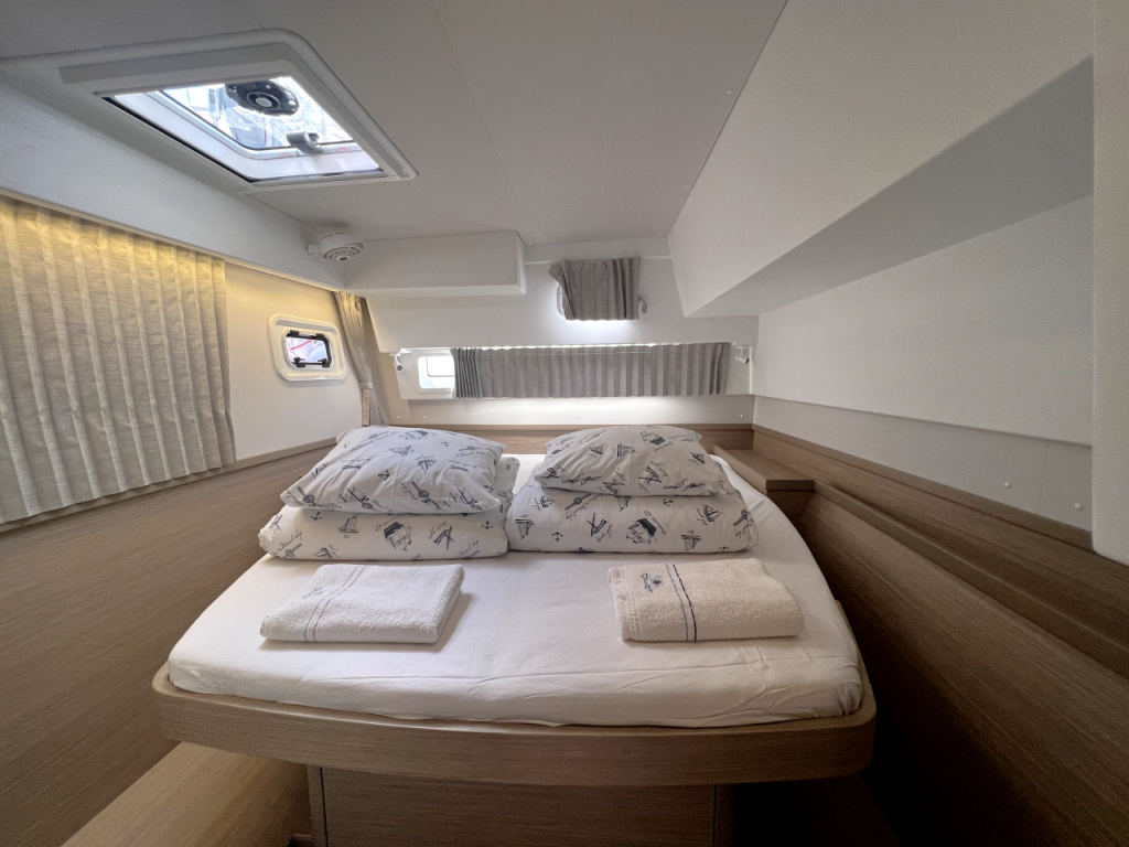 Catamaran Lagoon 42 Bendmill, built in 2023 is anchored in the Marina Kastela, Split region, Croatia. It has 4 + 1 cabins, can accommodate 8 + 2 + 1 people and has 4 toilets. Bed linen and kitchen equipment are included in the price.