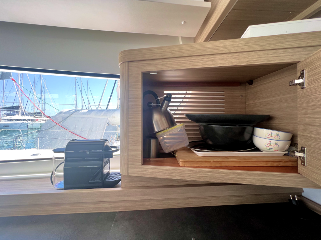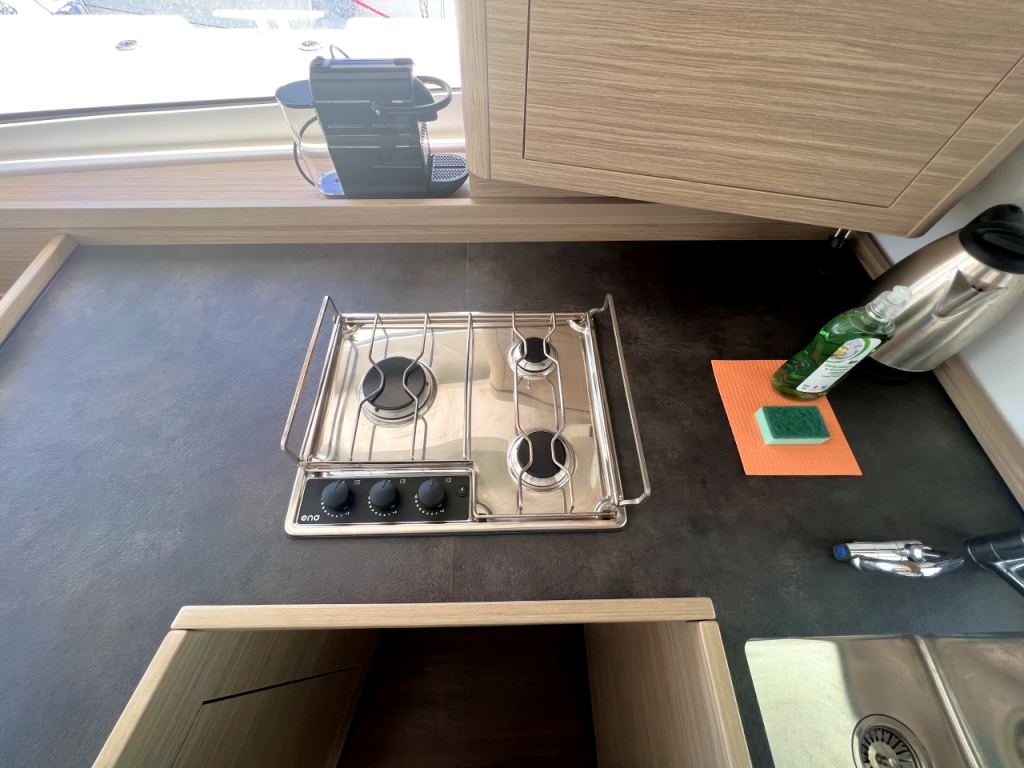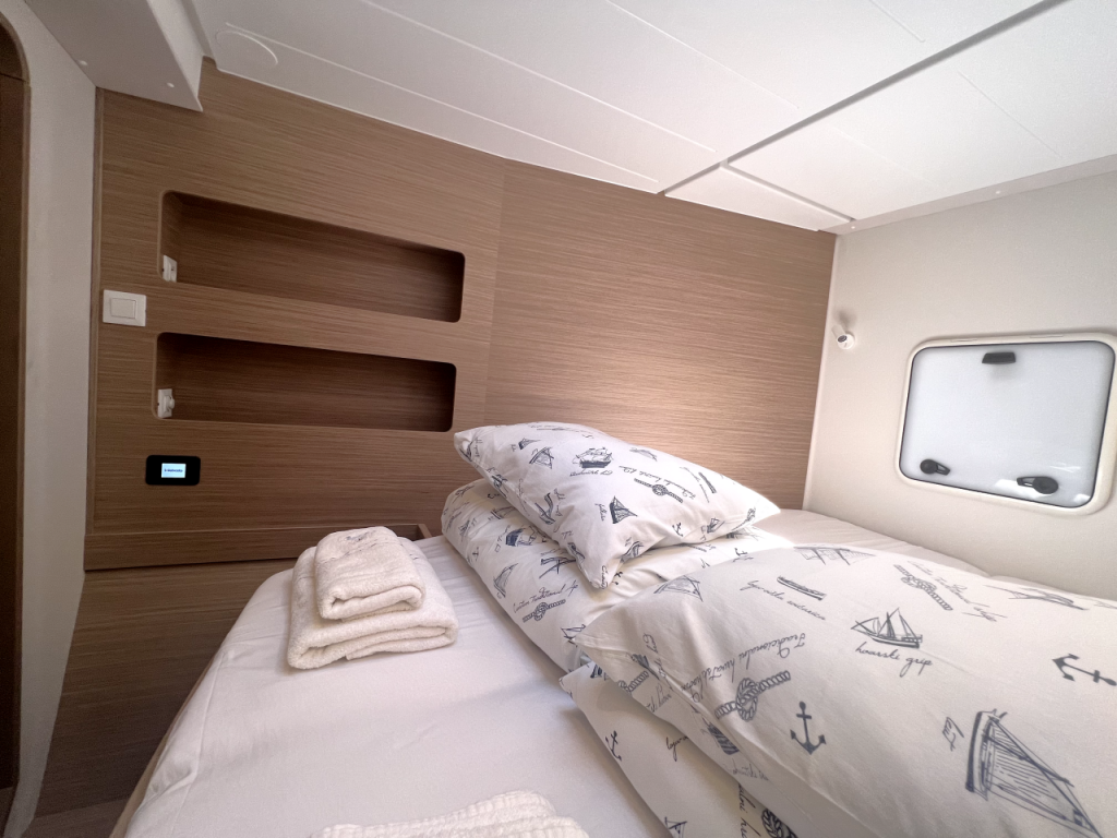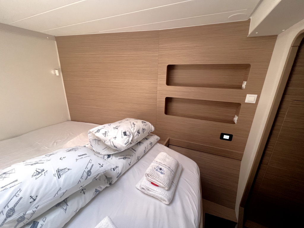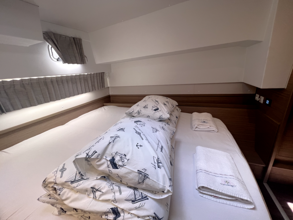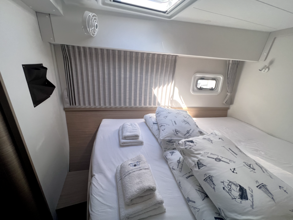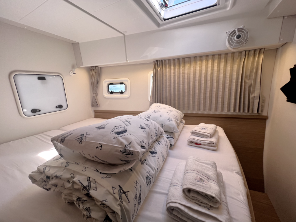 Catamaran Lagoon 42 Bendmill, built in 2023 is anchored in the Marina Kastela, Split region, Croatia. It has 4 + 1 cabins, can accommodate 8 + 2 + 1 people and has 4 toilets. Bed linen and kitchen equipment are included in the price.