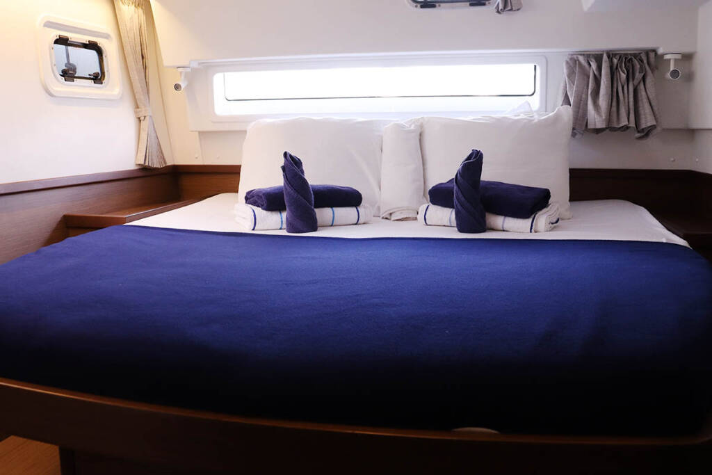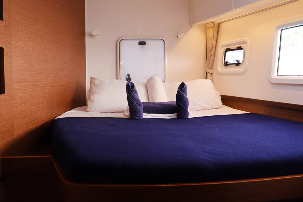 Catamaran Lagoon 42 Blú Heron, built in 2022 is anchored in the BVI, Tortola, Nanny Cay Marina, British Virgin Islands, British Virgin Islands. It has 4 + 2 cabins, can accommodate 8 + 2 + 2 people and has 4 toilets. Bed linen and kitchen equipment are included in the price.