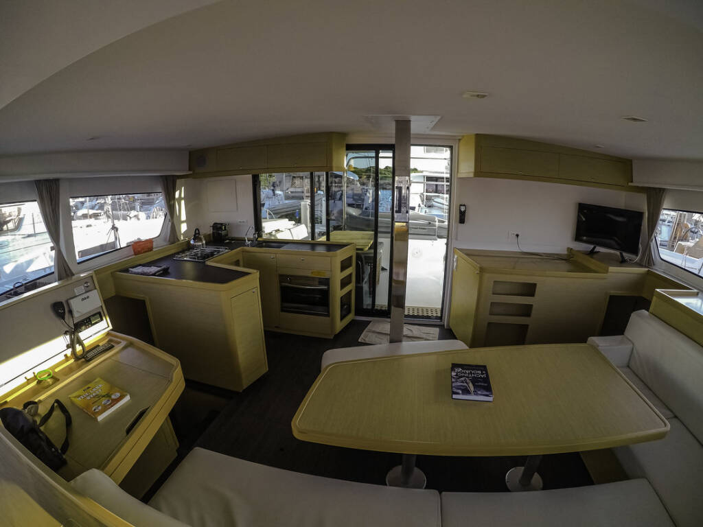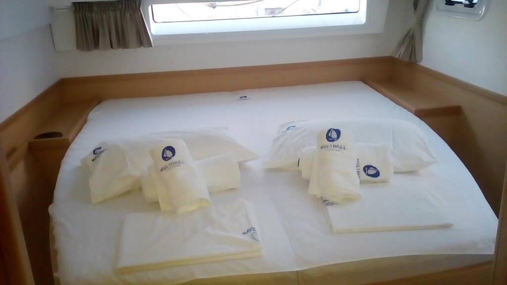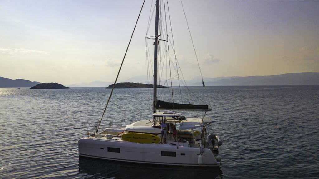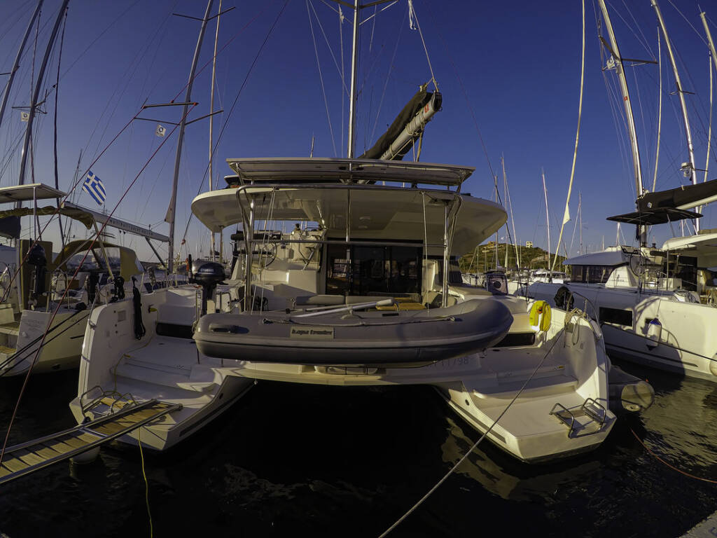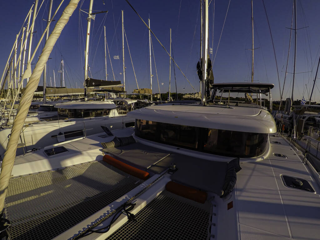 Catamaran Lagoon 42 Chamotte, built in 2017 is anchored in the Lavrion - Olympic Marine, Athens area/Saronic/Peloponese, Greece. It has 4 + 2 cabins, can accommodate 8 + 1 + 2 people and has 4 + 1 toilets. Bed linen and kitchen equipment are included in the price.