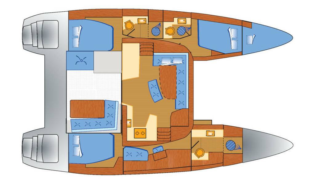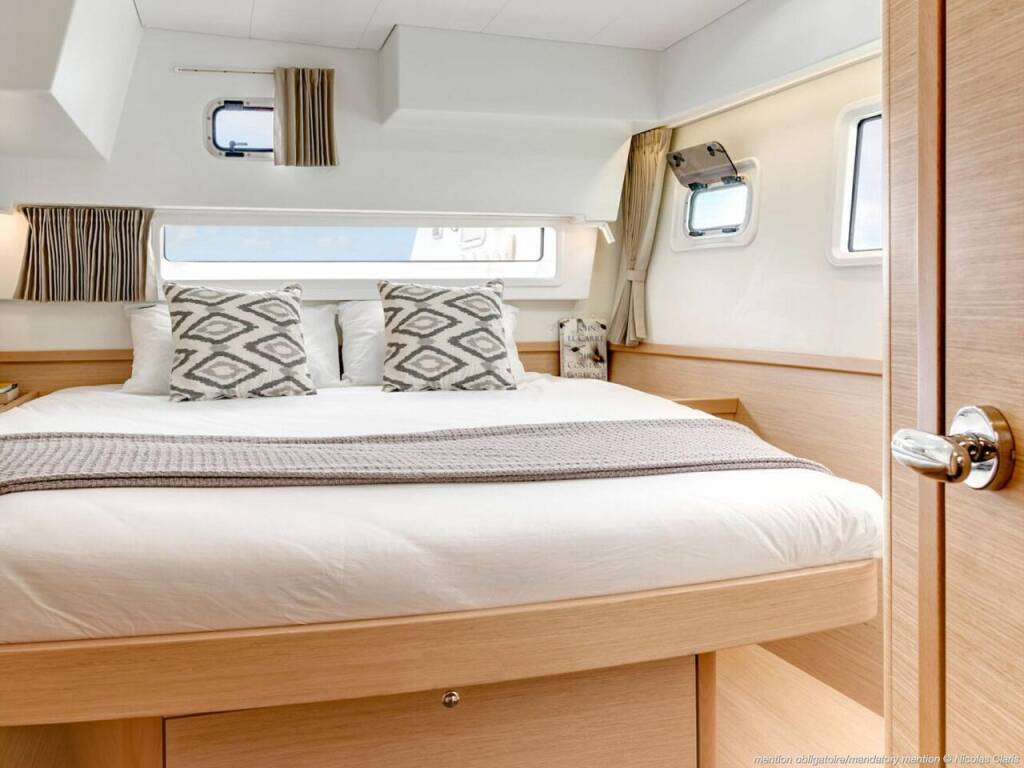 Catamaran Lagoon 42 Dream of Liberty, built in 2023 is anchored in the Marina Kornati, Biograd, Zadar region, Croatia. It has 3 + 1 cabins, can accommodate 6 + 2 + 1 people and has 3 toilets. Bed linen and kitchen equipment are included in the price.