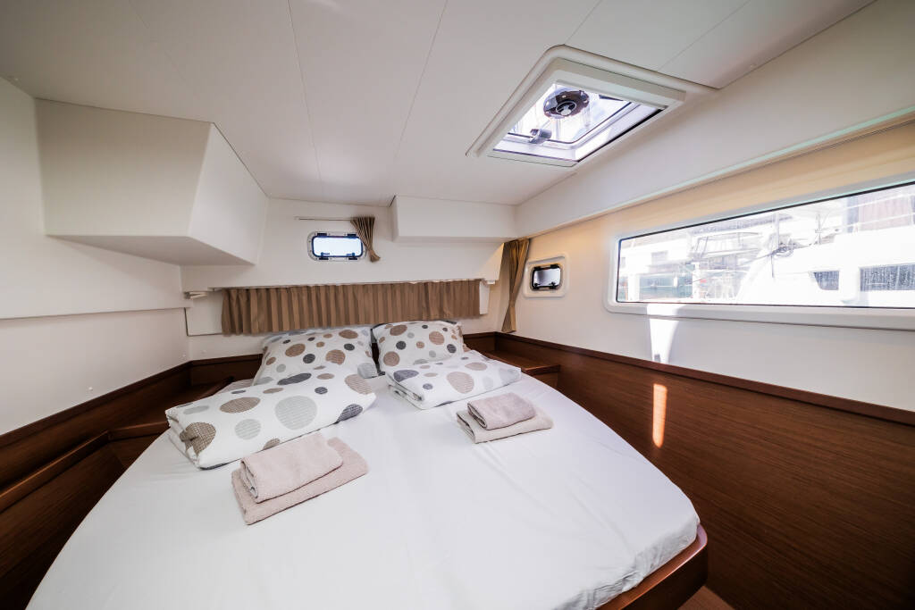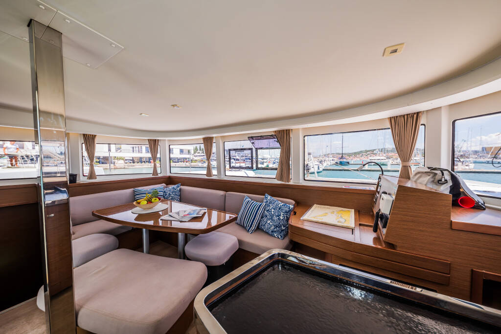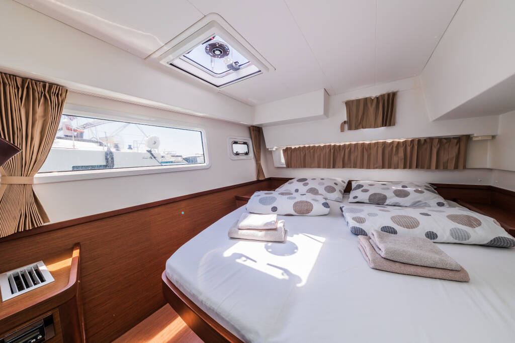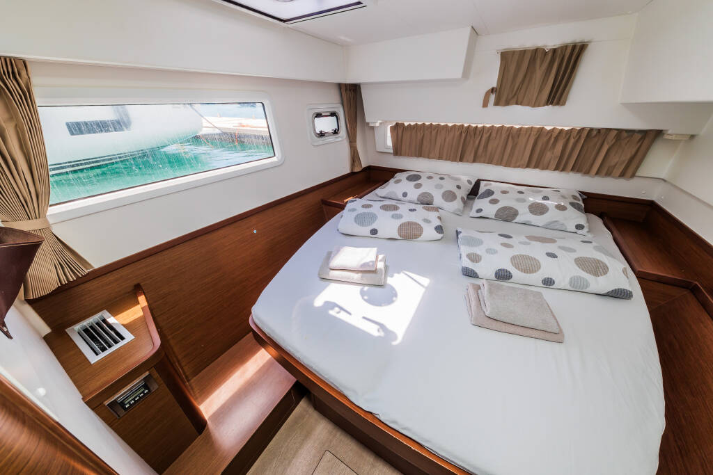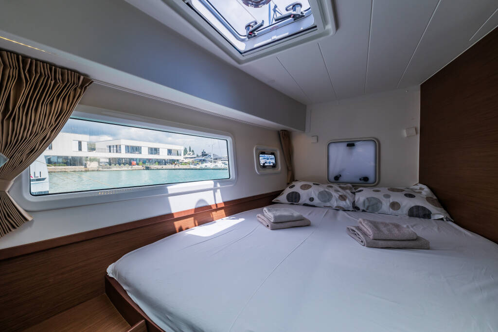 Catamaran Lagoon 42 Edita, built in 2018 is anchored in the Trogir, Yachtclub Seget (Marina Baotić), Split region, Croatia. It has 4 + 2 cabins, can accommodate 8 + 2 + 2 people and has 4 toilets. Bed linen and kitchen equipment are included in the price.