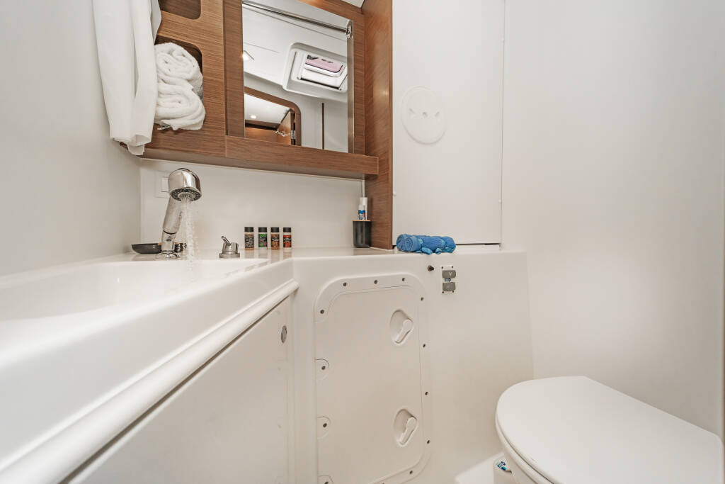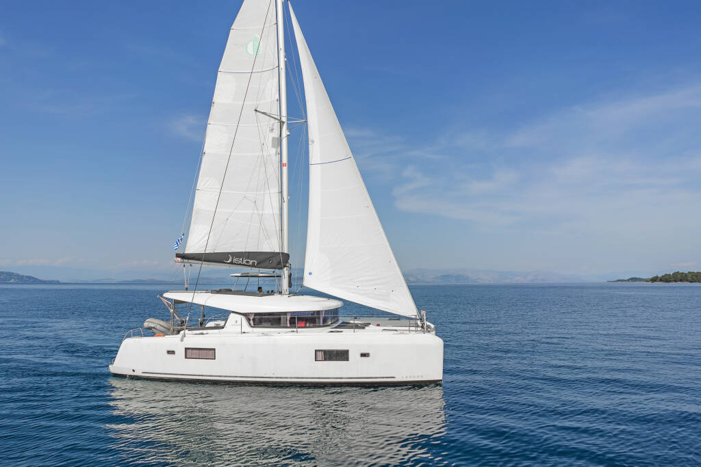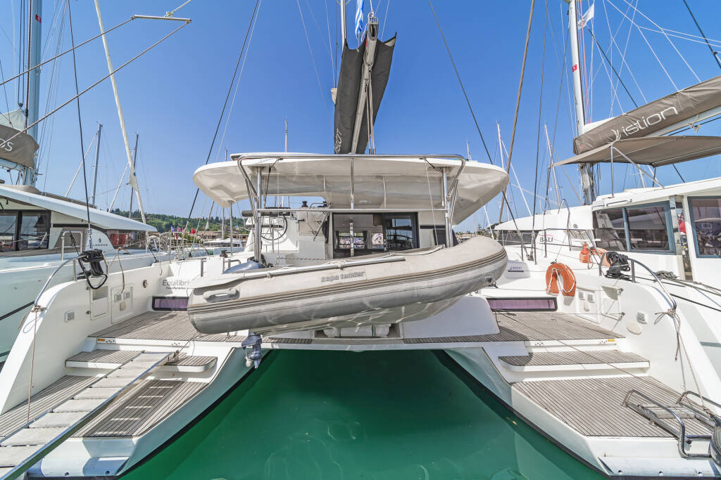 Catamaran Lagoon 42 Equilibrium, built in 2018 is anchored in the Corfu, Gouvia Marina, Ionian Islands, Greece. It has 4 + 2 cabins, can accommodate 8 + 2 people and has 4 + 1 toilets. Bed linen and kitchen equipment are included in the price.