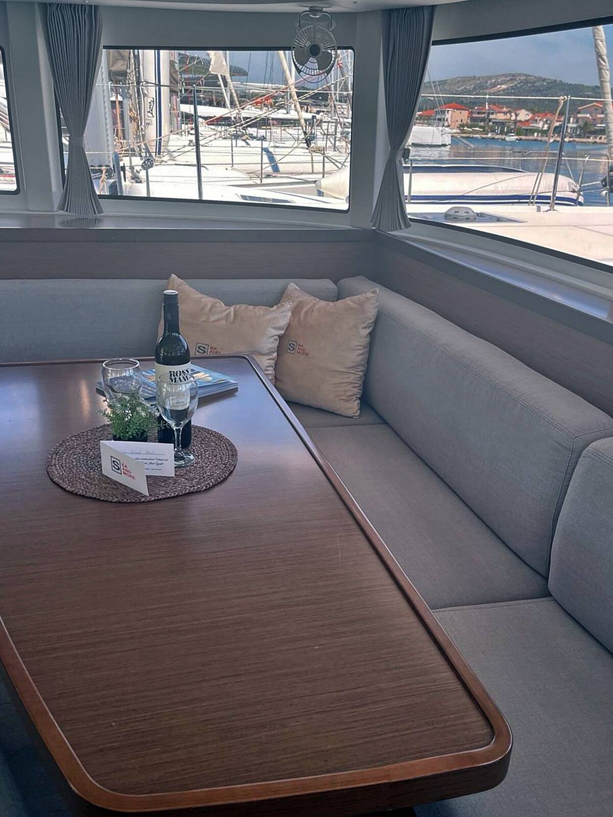 Catamaran Lagoon 42 Futuna Lima, built in 2021 is anchored in the Marina Frapa, Rogoznica, Šibenik region, Croatia. It has 4 + 2 cabins, can accommodate 8 + 2 + 2 people and has 4 toilets. Bed linen and kitchen equipment are included in the price.