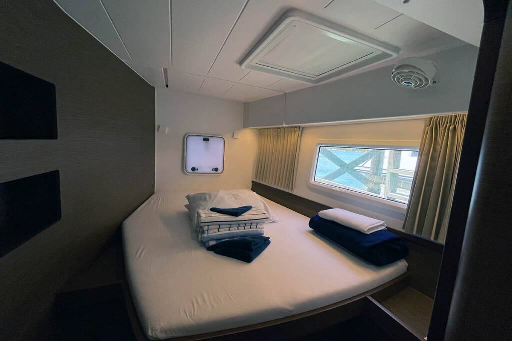 +provisioning ; Crew on board must have their own toilets/ showers. If either a skipper or a hostess/cook is on board, 1 double cabin will be required for him/her. If both a skipper and a hostess/cook are on board, 1 double cabin and 1 forepeak cabin will be required for them. Exceptions exists for specific layouts, Sales Agents will provide more details about the different boat models. - Payable at the base