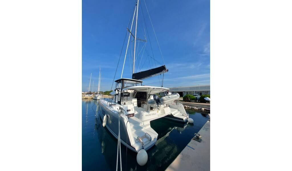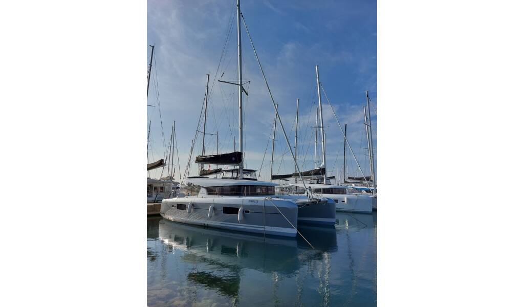 Catamaran Lagoon 42 Madre Perla, built in 2022 is anchored in the Sukosan, D-Marin Dalmacija Marina, Zadar region, Croatia. It has 4 + 2 cabins, can accommodate 8 + 2 + 2 people and has 4 toilets. Bed linen and kitchen equipment are included in the price.