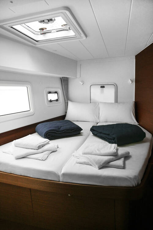 Catamaran Lagoon 42 Nami, built in 2022 is anchored in the Athens, Alimos marina, Athens area/Saronic/Peloponese, Greece. It has 4 + 2 cabins, can accommodate 8 + 2 people and has 4 + 1 toilets. Bed linen and kitchen equipment are included in the price.