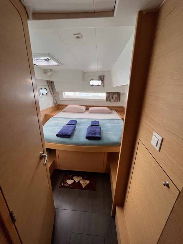 Catamaran Lagoon 42 Ocean Light, built in 2017 is anchored in the Golfo Aranci Marina Dell’Isola, Sardinia, Italy. It has 4 cabins, can accommodate 8 people and has 4 toilets. Bed linen and kitchen equipment are included in the price.