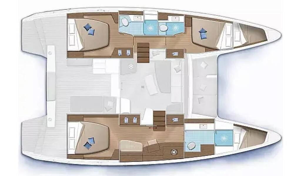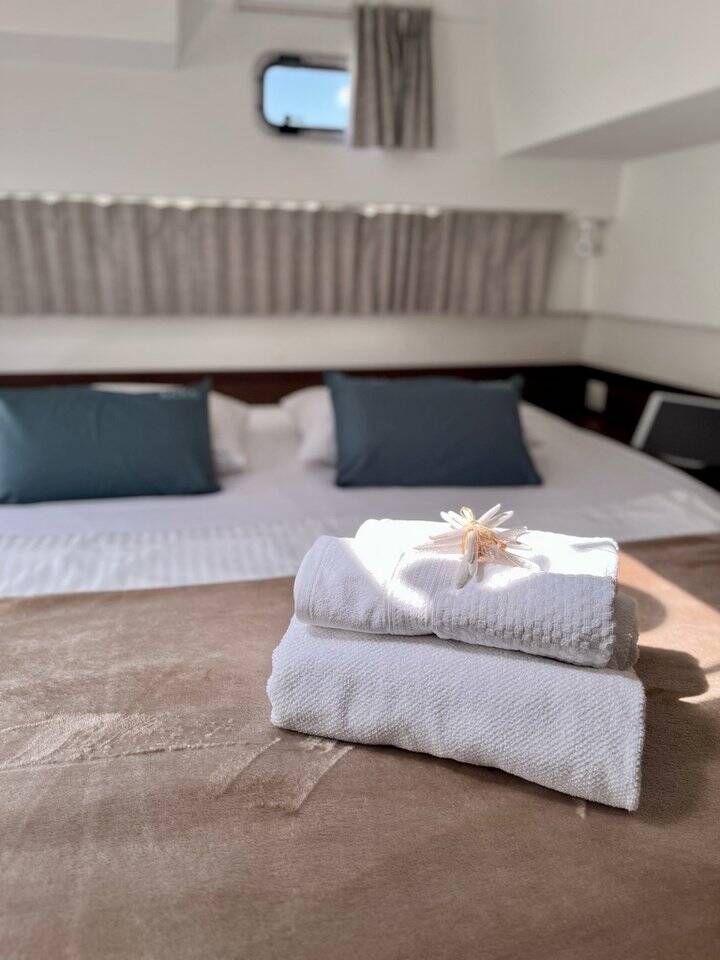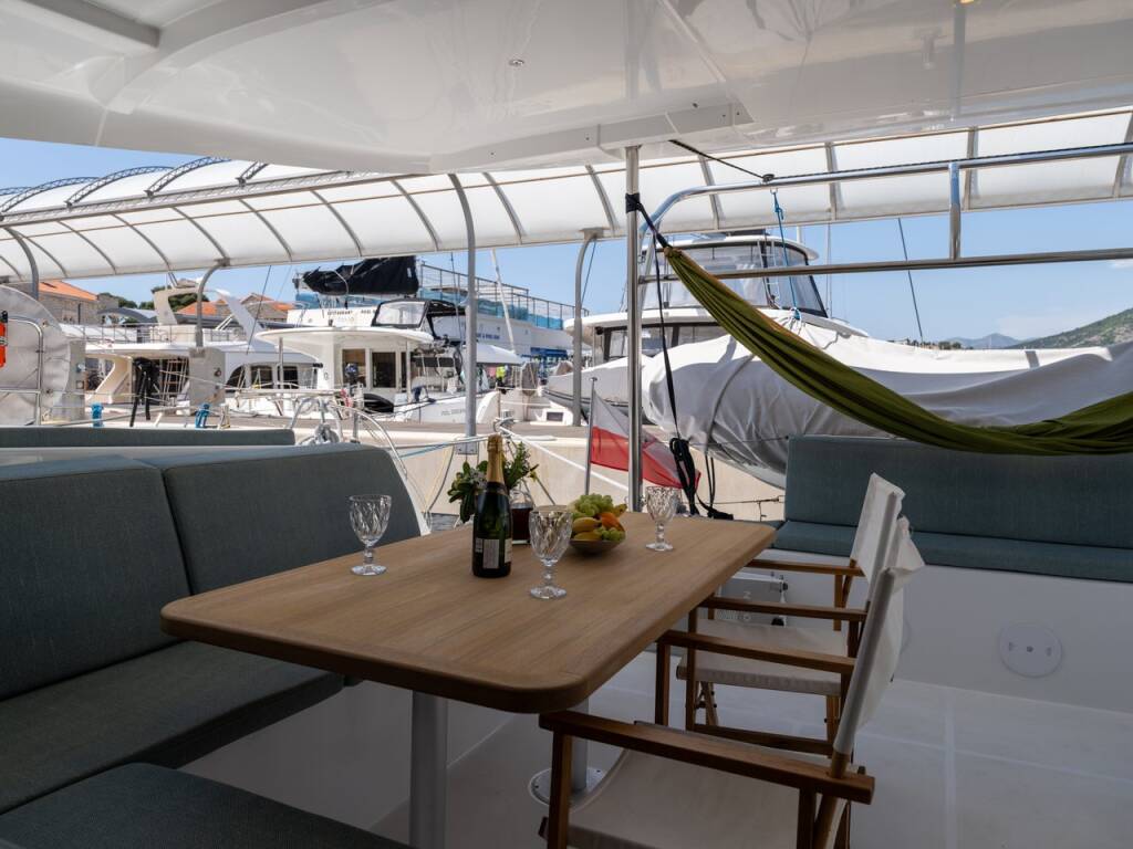 Catamaran Lagoon 42 OW Jutka, built in 2022 is anchored in the Dubrovnik, Komolac, ACI Marina Dubrovnik, Dubrovnik region, Croatia. It has 3 + 2 cabins, can accommodate 6 + 2 + 1 people and has 3 toilets. Bed linen and kitchen equipment are included in the price.