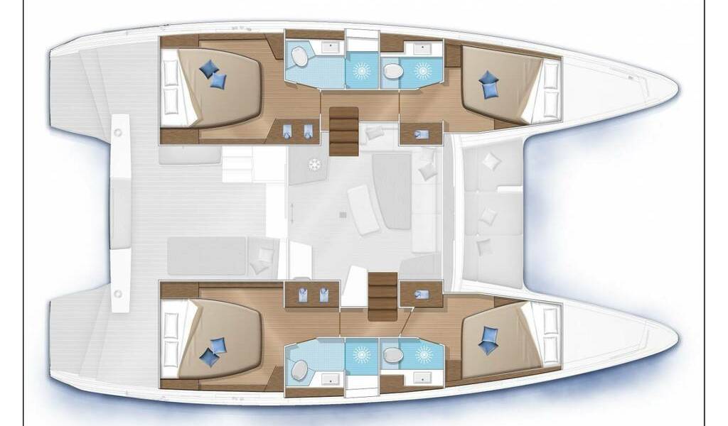 Catamaran Lagoon 42 Petit Terre, built in 2025 is anchored in the Guadeloupe, La Marina Bas du Fort, Guadeloupe, Caribbean. It has 4 + 2 cabins, can accommodate 8 + 2 people and has 4 toilets. Bed linen and kitchen equipment are included in the price.