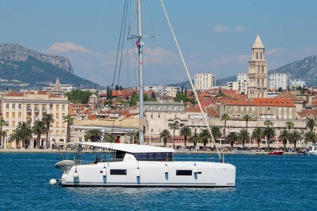 Catamaran Lagoon 42 Poppy, built in 2019 is anchored in the ACI Marina Split, Split region, Croatia. It has 4 + 2 cabins, can accommodate 8 + 1 + 2 people and has 4 toilets. Bed linen and kitchen equipment are included in the price.