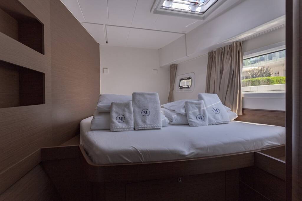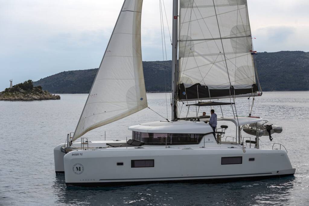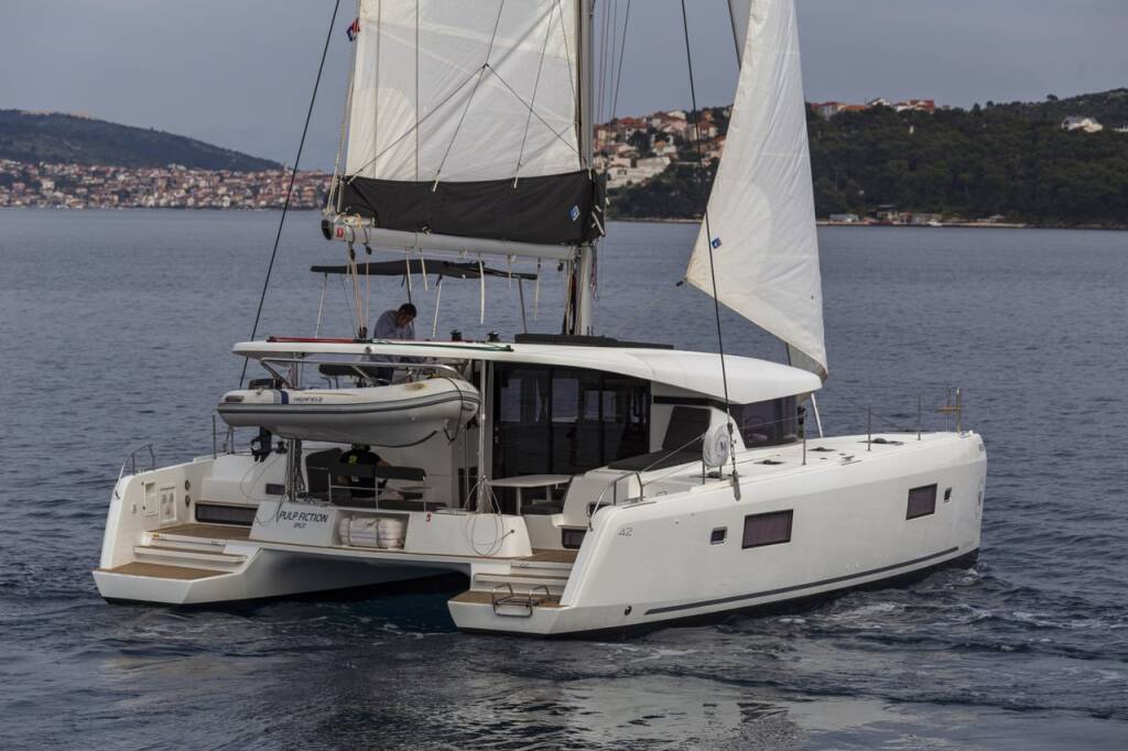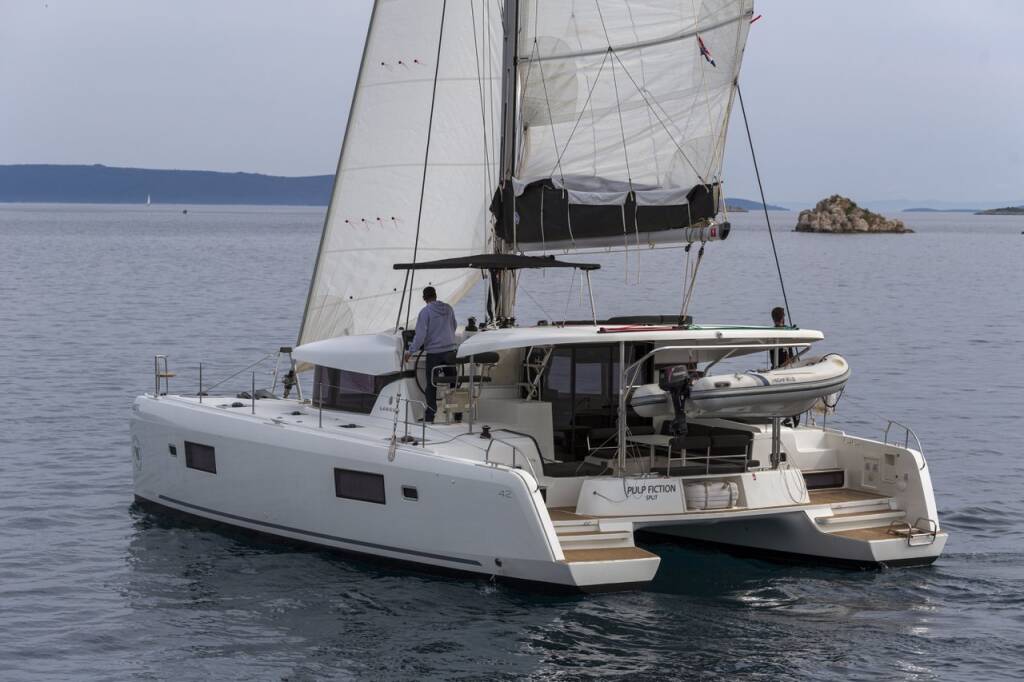 Catamaran Lagoon 42 Pulp Fiction, built in 2018 is anchored in the Trogir, Marina Trogir (ex.SCT), Split region, Croatia. It has 4 + 2 cabins, can accommodate 8 + 2 + 2 people and has 4 toilets. Bed linen and kitchen equipment are included in the price.