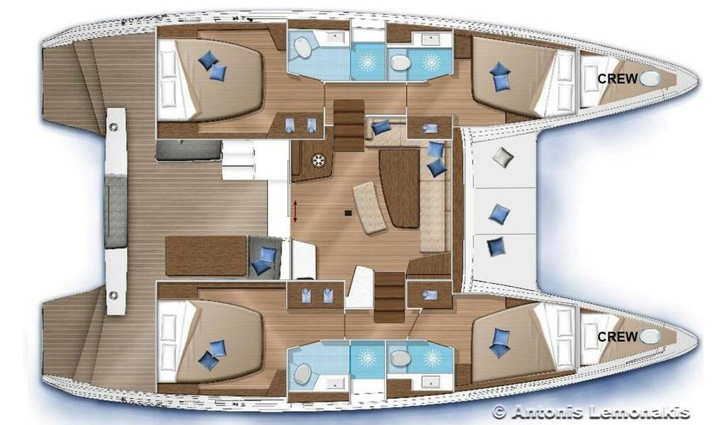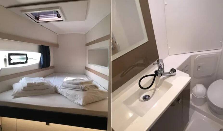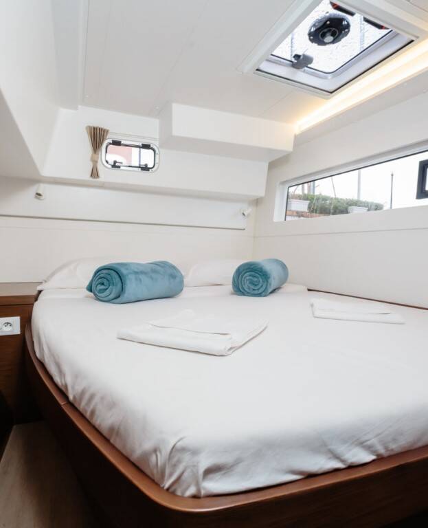 Catamaran Lagoon 42 Roulette 2, built in 2019 is anchored in the Capo D'orlando Marina, Sicily, Italy. It has 4 + 2 cabins, can accommodate 8 + 2 + 2 people and has 4 toilets. Bed linen and kitchen equipment are included in the price.
