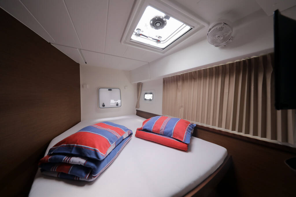 Catamaran Lagoon 42 Sapphire, built in 2018 is anchored in the ACI Marina Vodice, Šibenik region, Croatia. It has 4 + 2 cabins, can accommodate 8 + 2 + 2 people and has 4 toilets. Bed linen and kitchen equipment are included in the price.