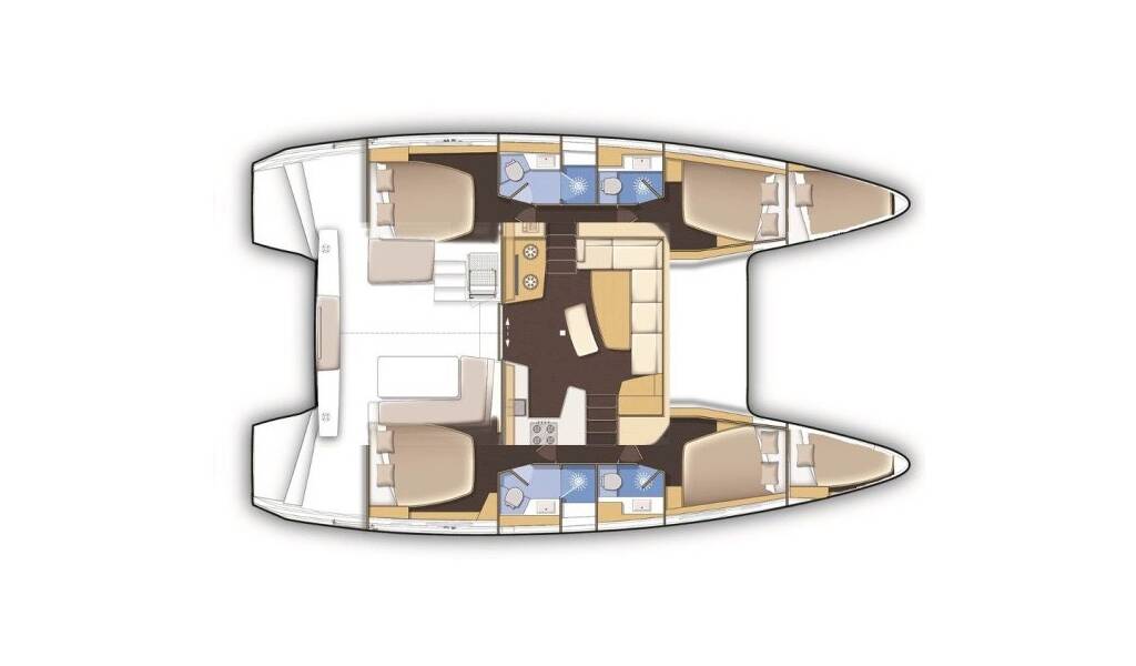 Catamaran Lagoon 42 Sea Voyager, built in 2018 is anchored in the ACI Marina Split, Split region, Croatia. It has 4 + 2 cabins, can accommodate 8 + 2 + 2 people and has 4 toilets. Bed linen and kitchen equipment are included in the price.