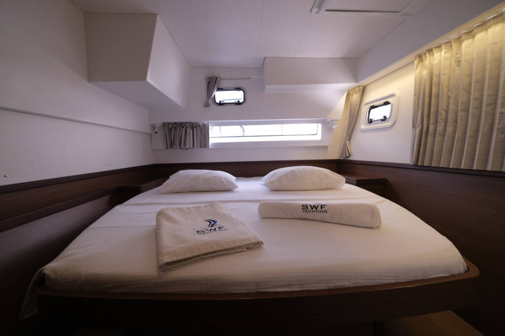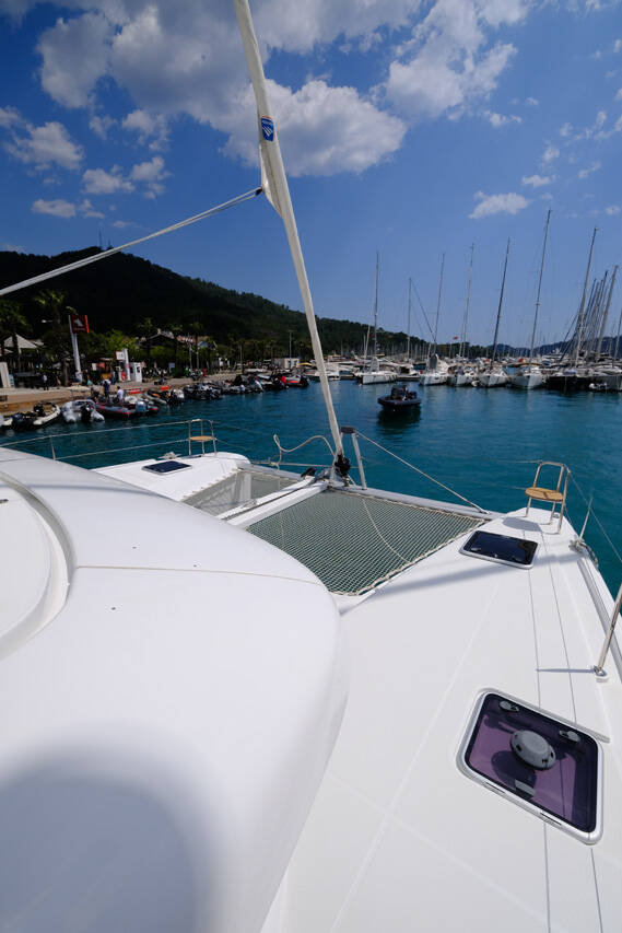 Catamaran Lagoon 42 Soffio, built in 2021 is anchored in the Göcek, Aegean, Turkey. It has 4 cabins, can accommodate 8 + 2 people and has 4 toilets. Bed linen and kitchen equipment are included in the price.
