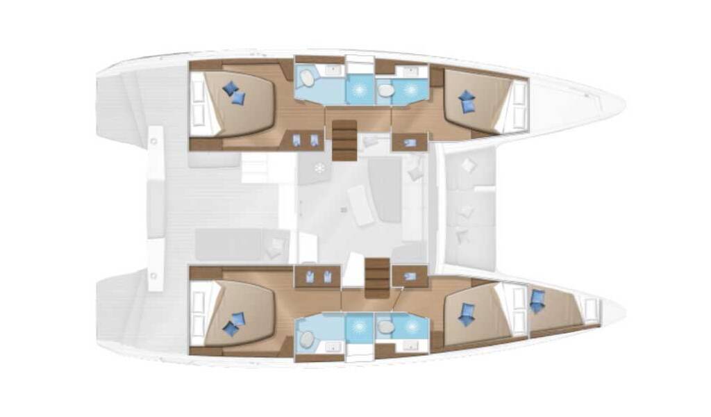Catamaran Lagoon 42 Solaris, built in 2024 is anchored in the Trogir, Marina Trogir (ex.SCT), Split region, Croatia. It has 4 + 1 cabins, can accommodate 8 + 2 + 1 people and has 4 toilets. Bed linen and kitchen equipment are included in the price.