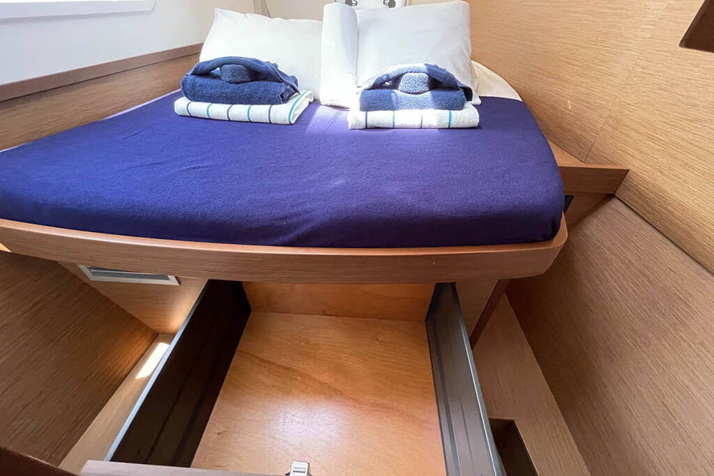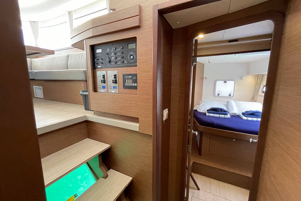 (for charters up to max 3 guests, one person works as a skipper and cook) + provisioning, Crew on board must have their own toilets/ showers. If either a skipper or a hostess/cook is on board, 1 double cabin will be required for him/her. If both a skipper and a hostess/cook are on board, 1 double cabin and 1 forepeak cabin will be required for them. Exceptions exists for specific layouts, Sales Agents will provide more details about the different boat models - Payable now