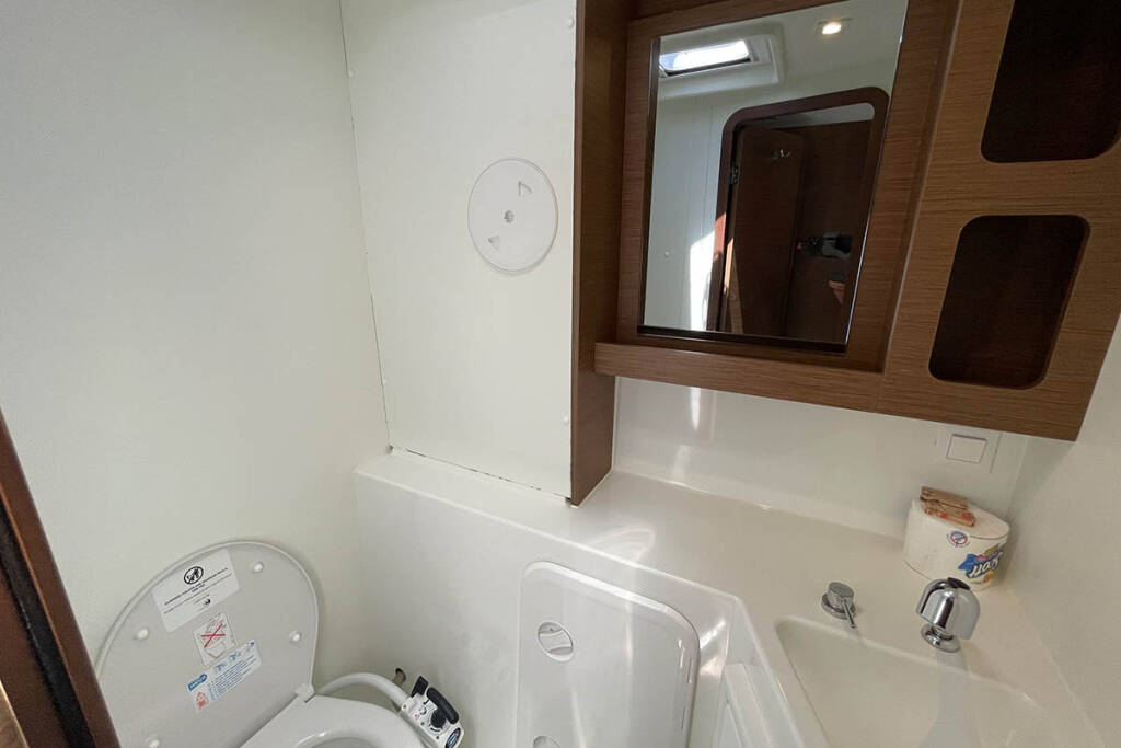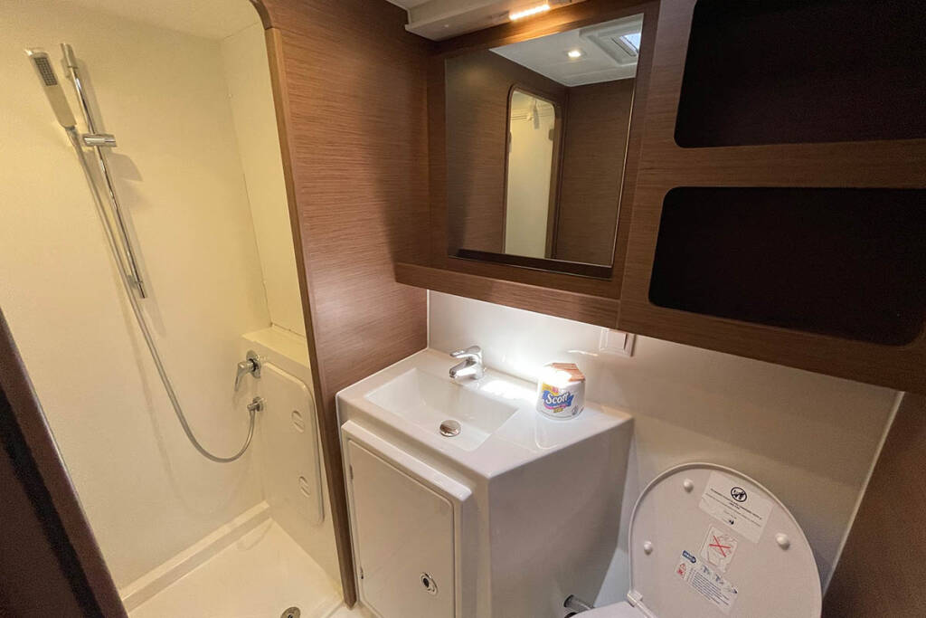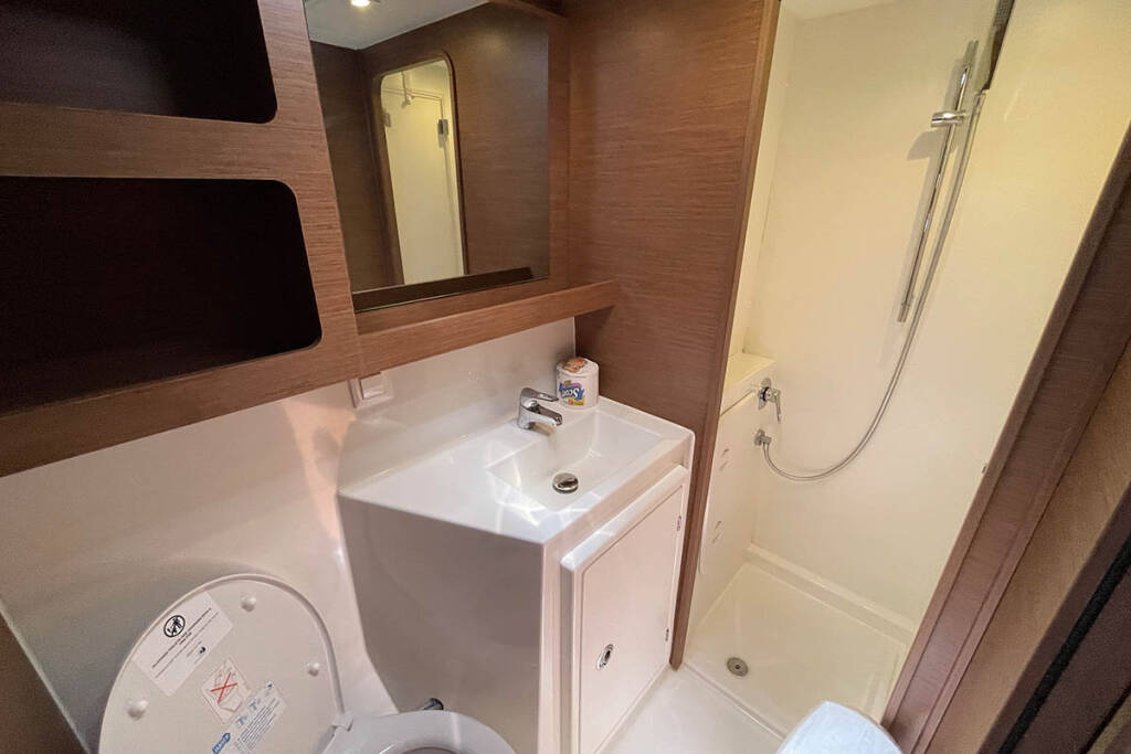 +provisioning ; Crew on board must have their own toilets/ showers. If either a skipper or a hostess/cook is on board, 1 double cabin will be required for him/her. If both a skipper and a hostess/cook are on board, 1 double cabin and 1 forepeak cabin will be required for them. Exceptions exists for specific layouts, Sales Agents will provide more details about the different boat models.