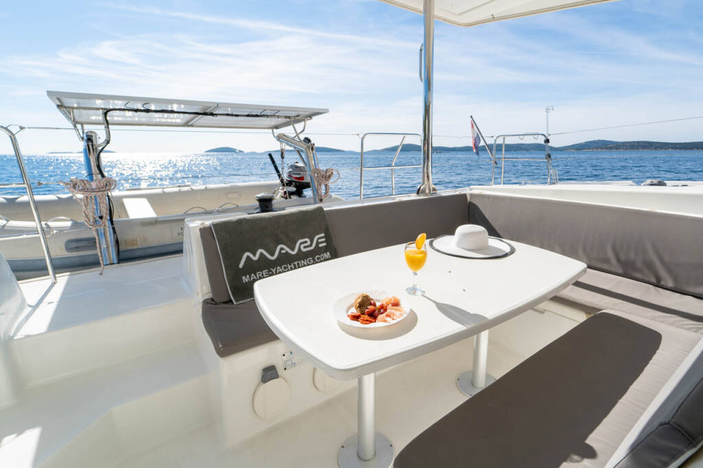 Catamaran Lagoon 421 Patch Work, built in 2014 is anchored in the Marina Mandalina, Sibenik, Šibenik region, Croatia. It has 4 + 1 cabins, can accommodate 8 + 2 + 1 people and has 4 + 1 toilets. Bed linen and kitchen equipment are included in the price.
