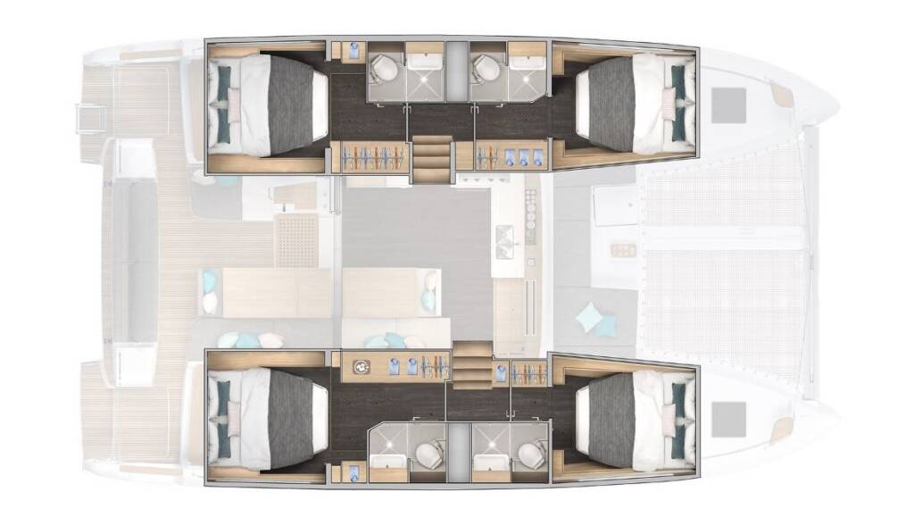 +provisioning ; Crew on board must have their own toilets/ showers. If either a skipper or a hostess/cook is on board, 1 double cabin will be required for him/her. If both a skipper and a hostess/cook are on board, 1 double cabin and 1 forepeak cabin will be required for them. Exceptions exists for specific layouts, Sales Agents will provide more details about the different boat models.