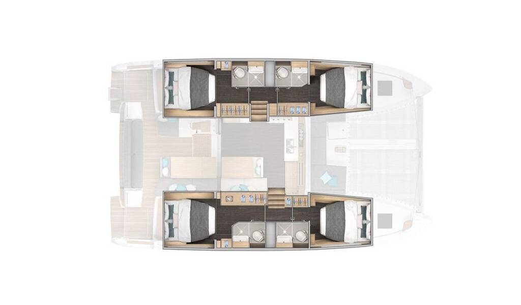 Catamaran Lagoon 43 Cloud Dancer 2, built in 2025 is anchored in the Phuket, Ao Po Grand Marina, Phuket, Thailand . It has 4 + 1 cabins, can accommodate 8 + 2 + 1 people and has 4 toilets. Bed linen and kitchen equipment are included in the price.