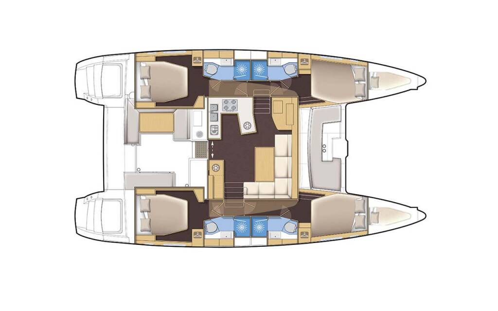 Catamaran Lagoon 450 Amelia, built in 2012 is anchored in the Athens, Alimos marina, Athens area/Saronic/Peloponese, Greece. It has 4 + 2 cabins, can accommodate 8 + 2 people and has 4 + 2 toilets. Bed linen and kitchen equipment are included in the price.