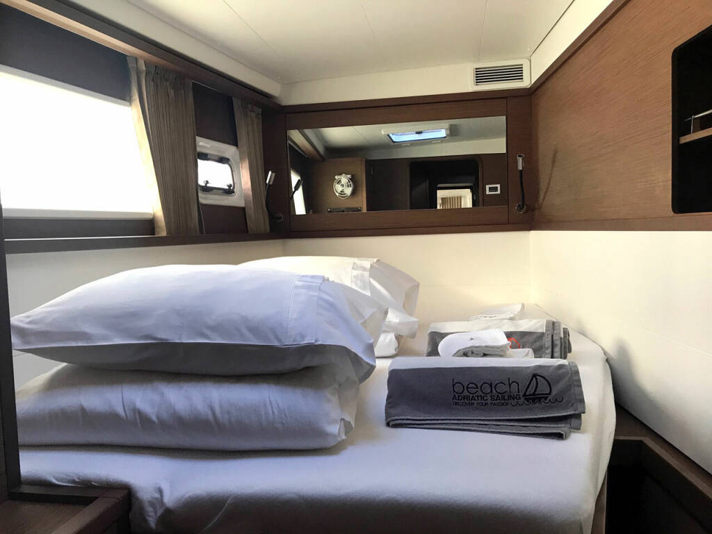 Catamaran Lagoon 450 F Adriatic Cheetah, built in 2018 is anchored in the Marina Kastela, Split region, Croatia. It has 4 + 2 cabins, can accommodate 8 + 2 + 2 people and has 4 toilets. Bed linen and kitchen equipment are included in the price.