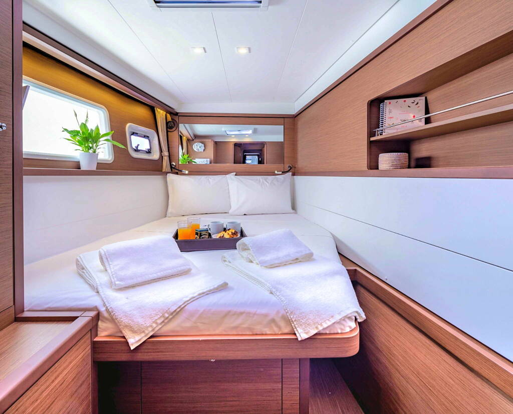 Catamaran Lagoon 450 F Alegria, built in 2019 is anchored in the Athens, Alimos marina, Athens area/Saronic/Peloponese, Greece. It has 4 + 2 cabins, can accommodate 8 + 2 + 2 people and has 4 + 1 toilets. Bed linen and kitchen equipment are included in the price.