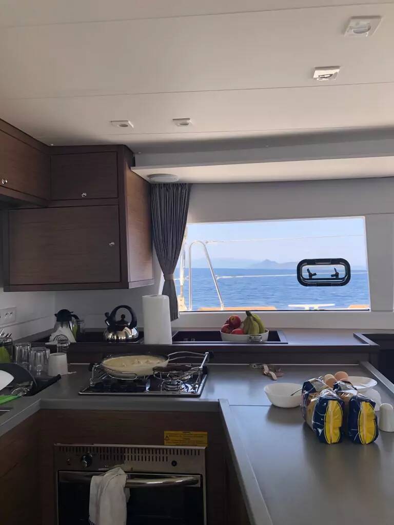 Catamaran Lagoon 450 F EVI, built in 2020 is anchored in the Corfu, Gouvia Marina, Ionian Islands, Greece. It has 4 + 2 cabins, can accommodate 8 + 2 + 2 people and has 4 + 1 toilets. Bed linen and kitchen equipment are included in the price.