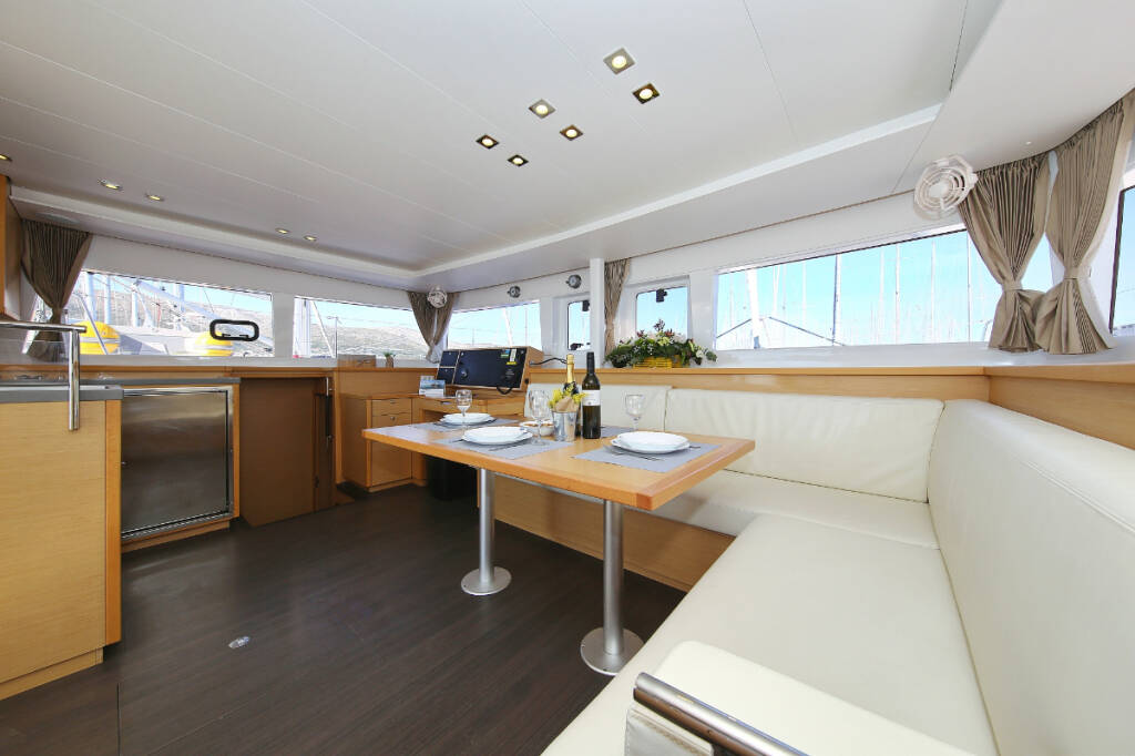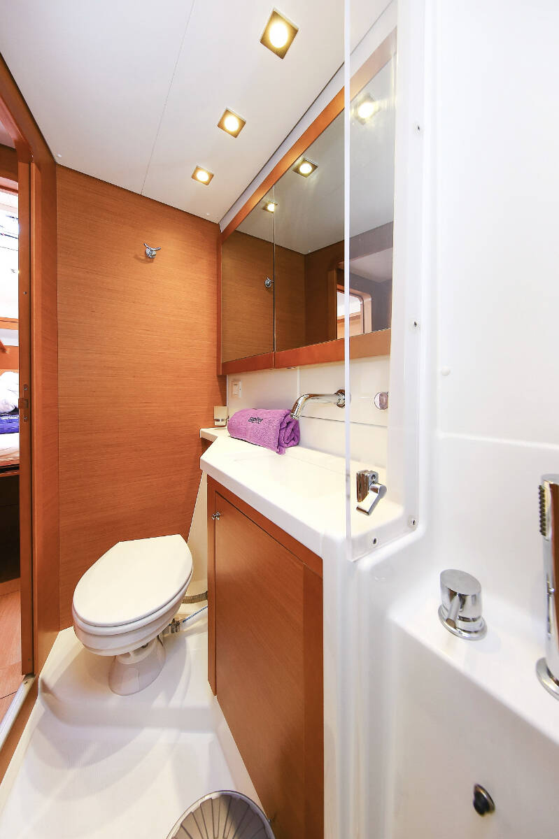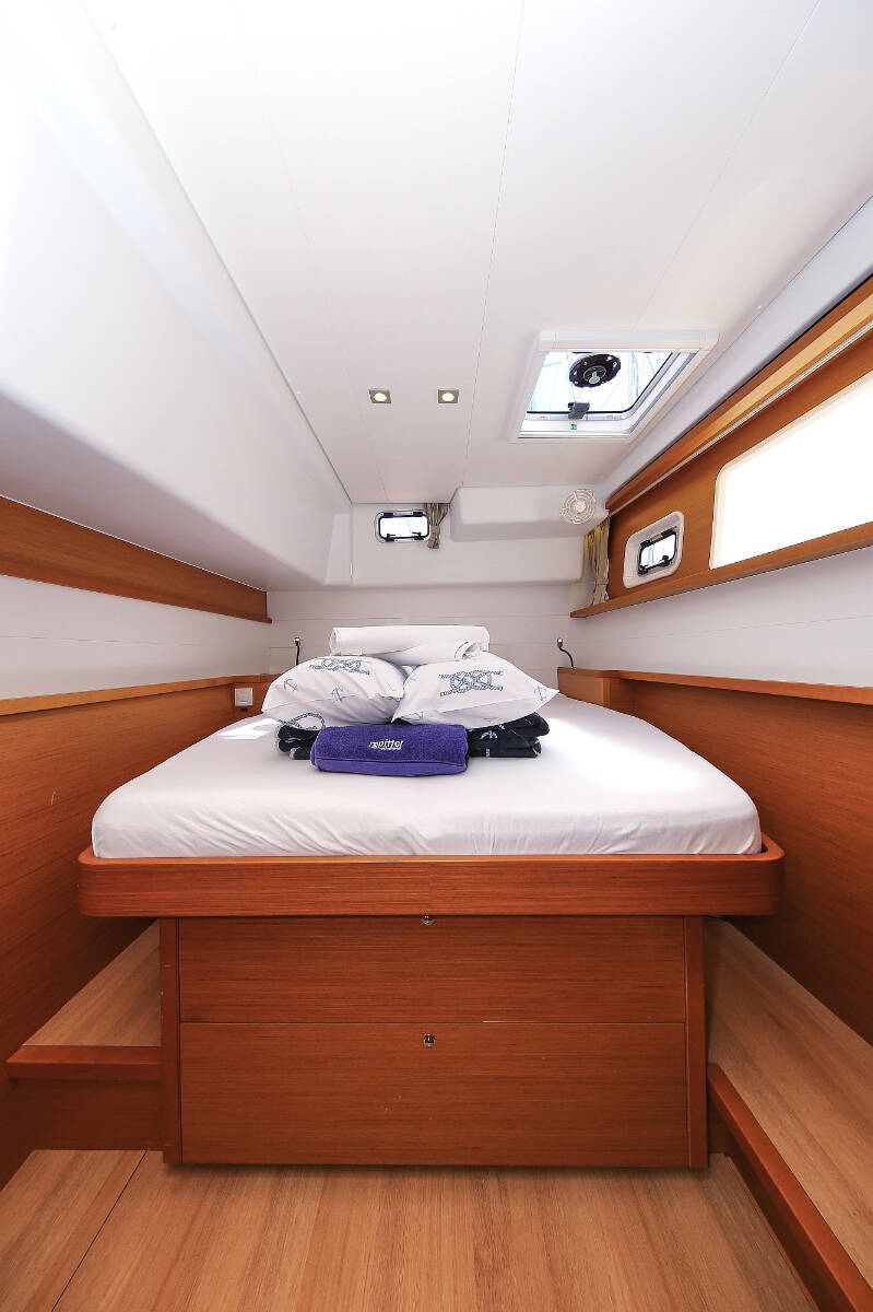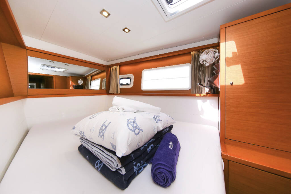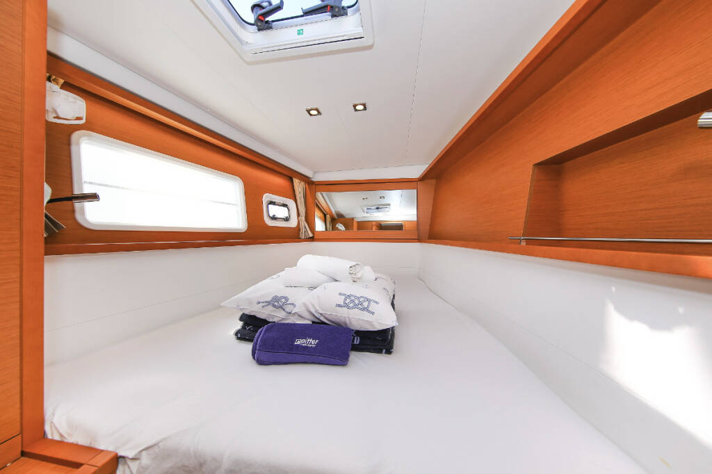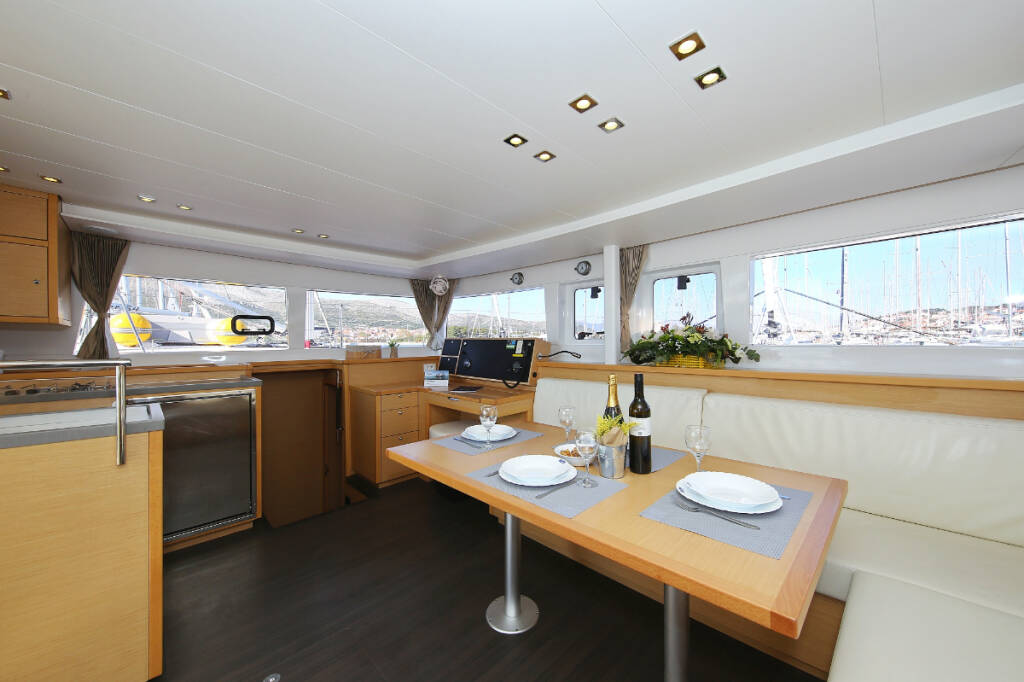 Catamaran Lagoon 450 F Fenadi, built in 2015 is anchored in the Trogir, Marina Trogir (ex.SCT), Split region, Croatia. It has 4 + 2 cabins, can accommodate 8 + 2 + 2 people and has 4 toilets. Bed linen and kitchen equipment are included in the price.