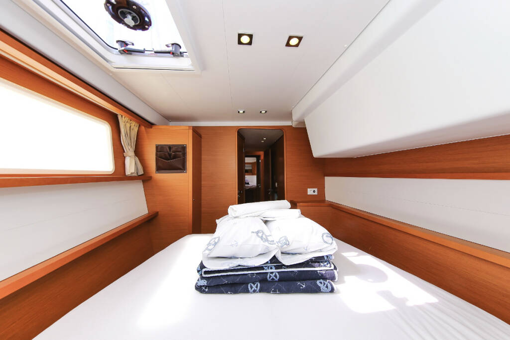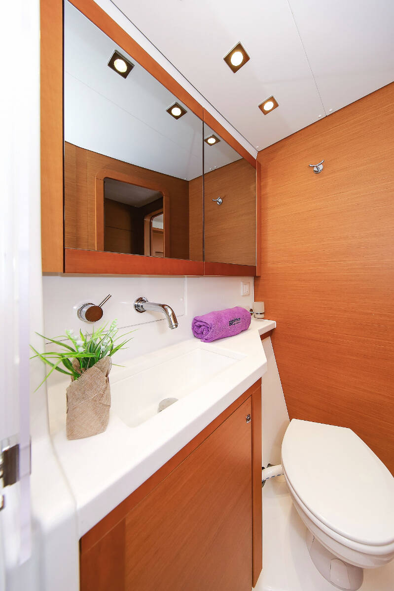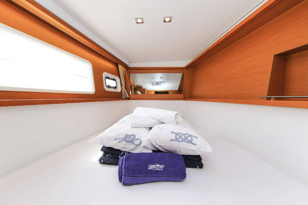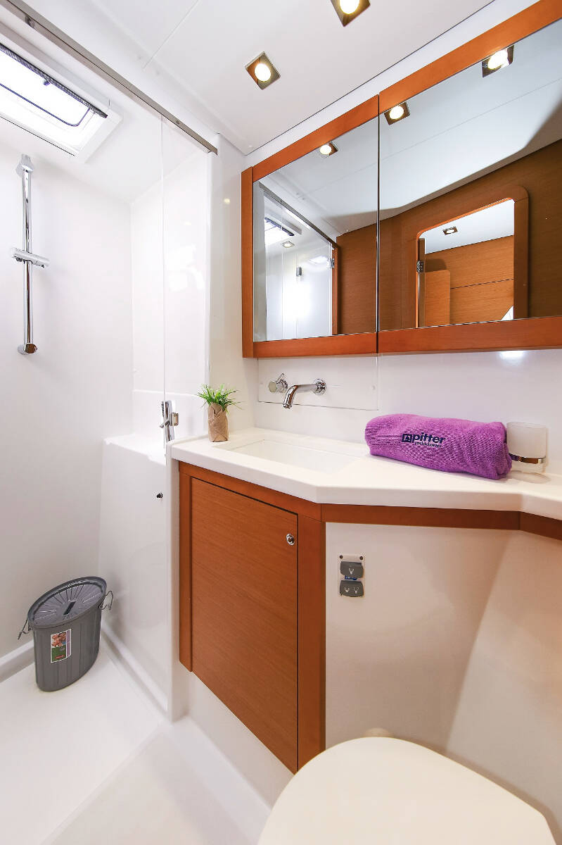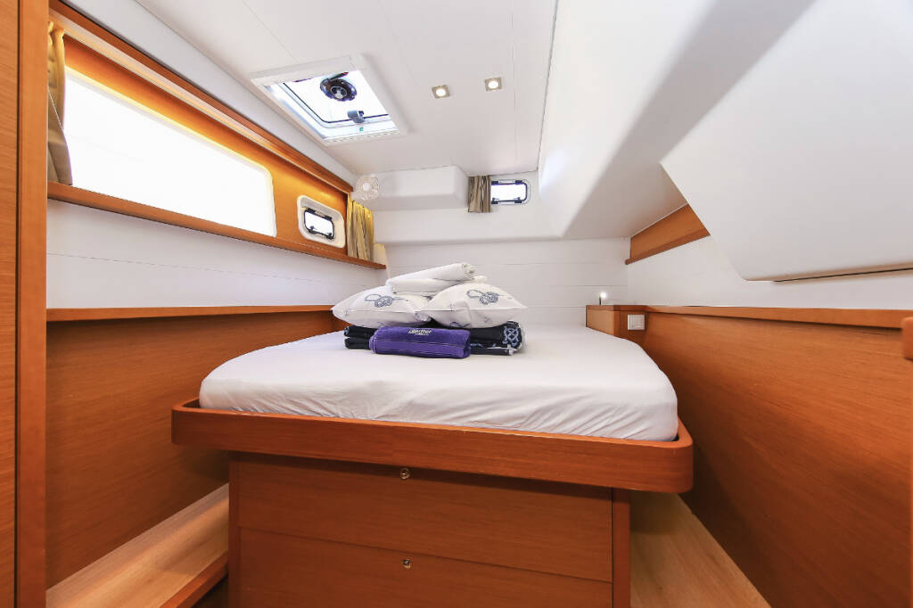 Catamaran Lagoon 450 F Fenadi, built in 2015 is anchored in the Trogir, Marina Trogir (ex.SCT), Split region, Croatia. It has 4 + 2 cabins, can accommodate 8 + 2 + 2 people and has 4 toilets. Bed linen and kitchen equipment are included in the price.