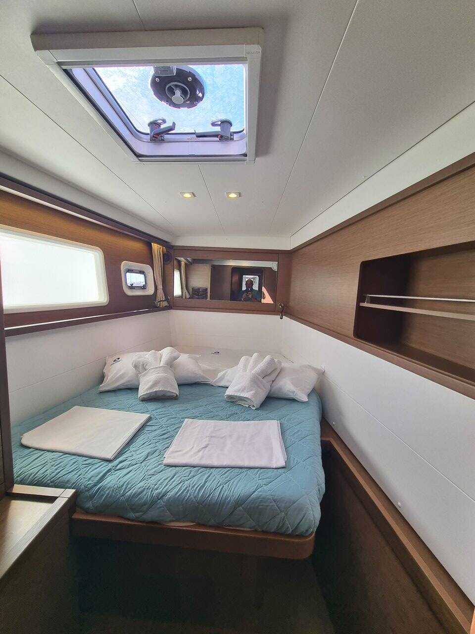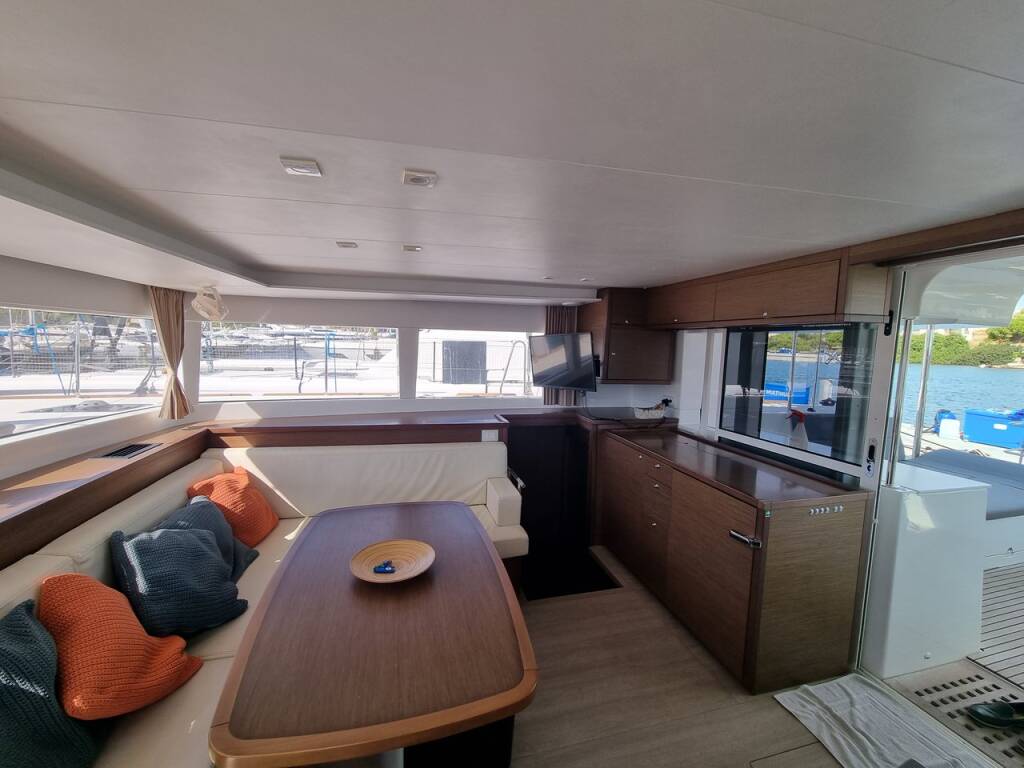 Catamaran Lagoon 450 F Lalouche, built in 2019 is anchored in the Lavrion - Olympic Marine, Athens area/Saronic/Peloponese, Greece. It has 4 + 2 cabins, can accommodate 8 + 2 people and has 4 + 1 toilets. Bed linen and kitchen equipment are included in the price.