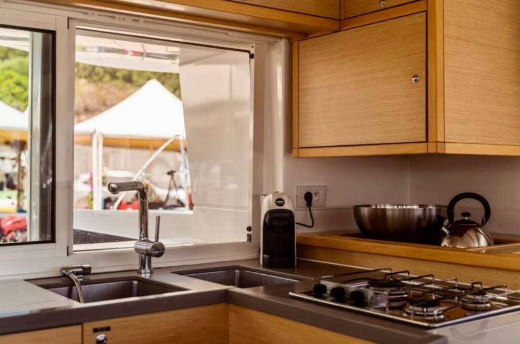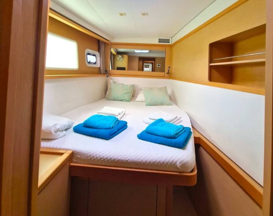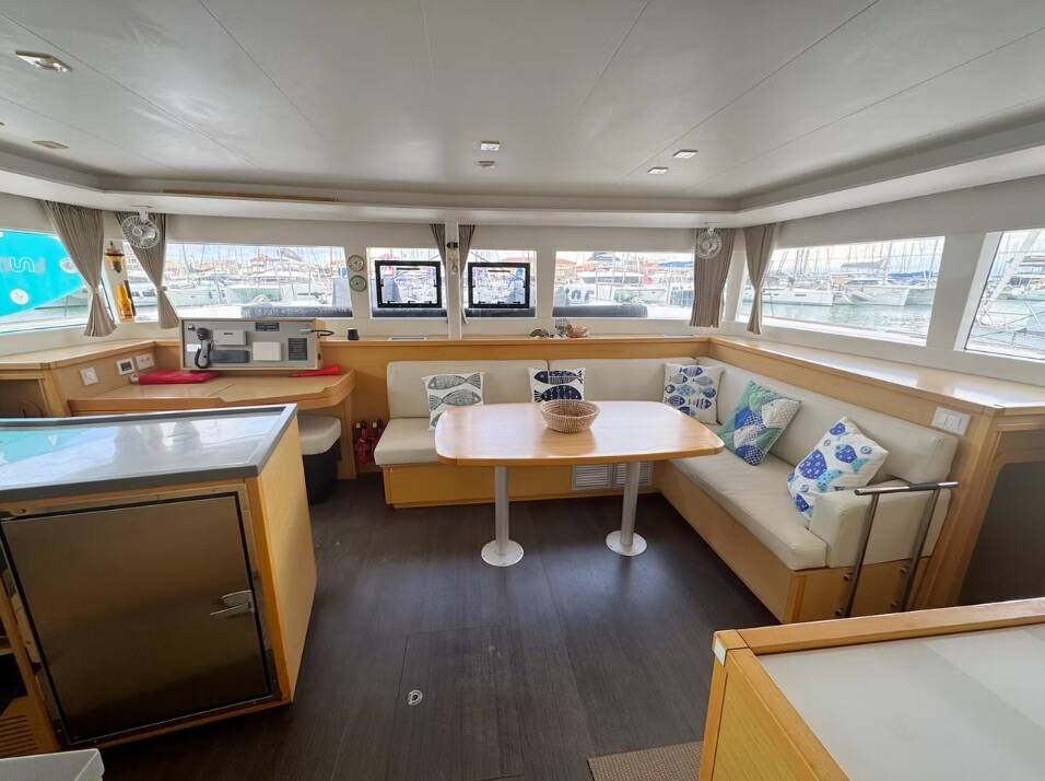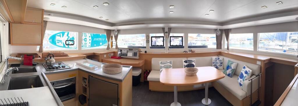 Catamaran Lagoon 450 F PaSEAon, built in 2018 is anchored in the Lefkas, D-Marin, Ionian Islands, Greece. It has 4 + 1 cabins, can accommodate 8 + 1 people and has 4 + 1 toilets. Bed linen and kitchen equipment are included in the price.