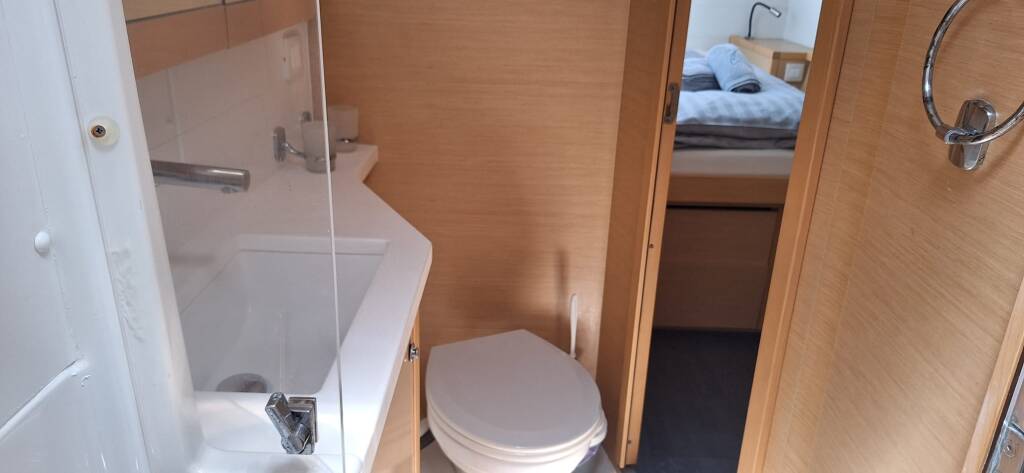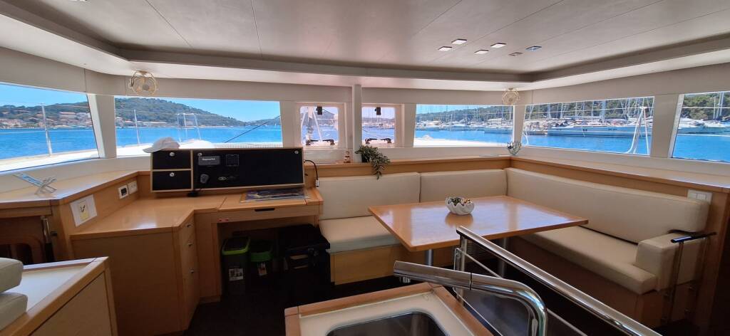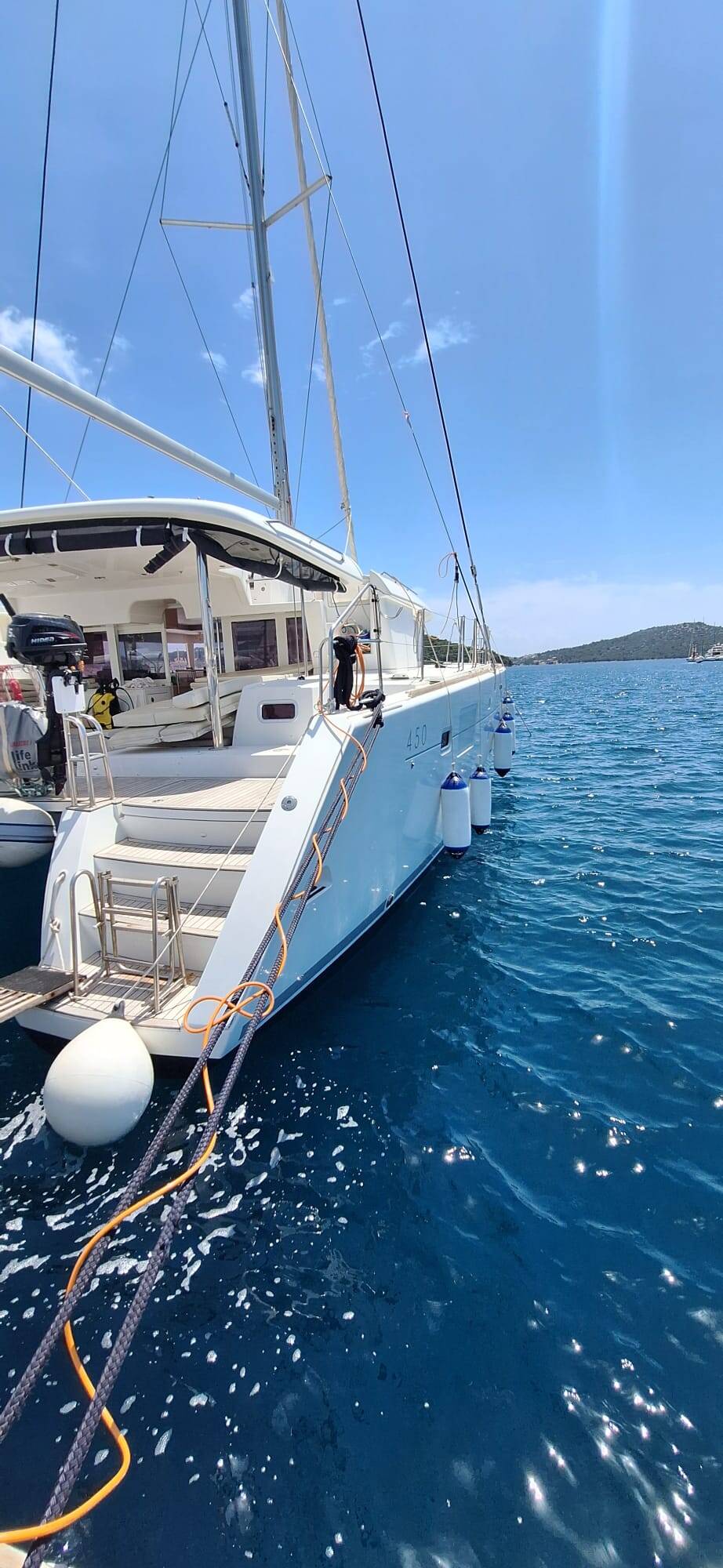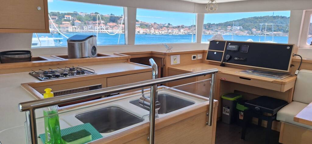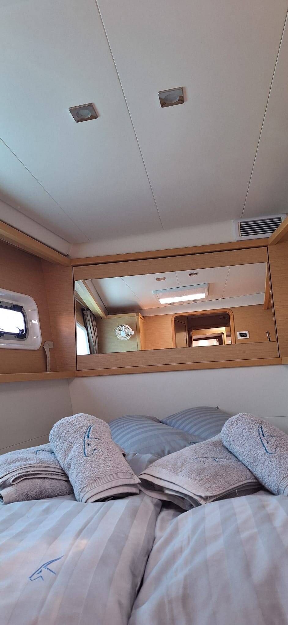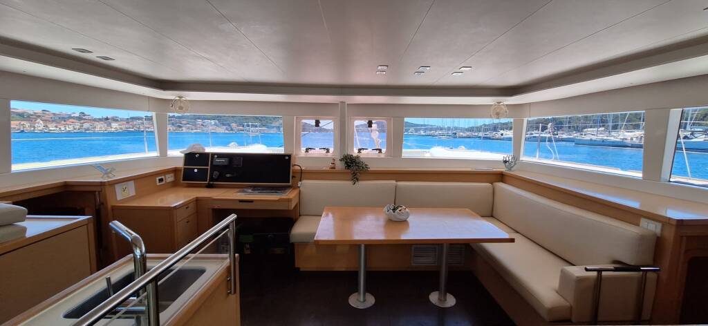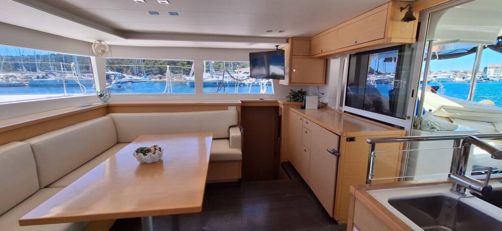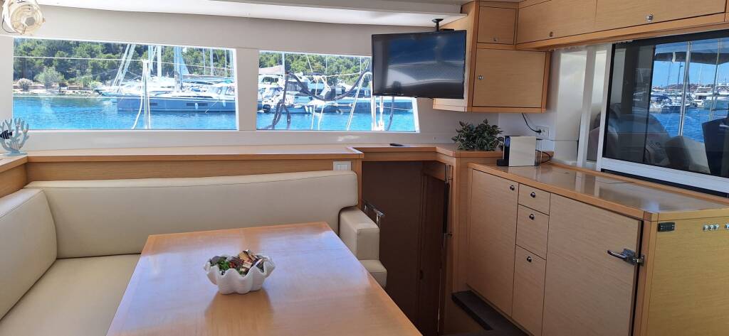 Catamaran Lagoon 450 Perla, built in 2013 is anchored in the Marina Frapa, Rogoznica, Šibenik region, Croatia. It has 4 + 2 cabins, can accommodate 8 + 1 + 1 people and has 4 toilets. Bed linen and kitchen equipment are included in the price.