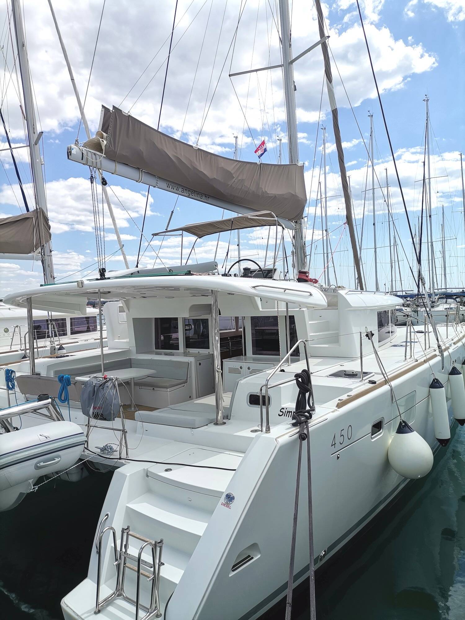 Catamaran Lagoon 450 Simply The Best, built in 2014 is anchored in the Trogir, Marina Trogir (ex.SCT), Split region, Croatia. It has 4 + 2 cabins, can accommodate 8 + 2 + 2 people and has 4 toilets. Bed linen and kitchen equipment are included in the price.